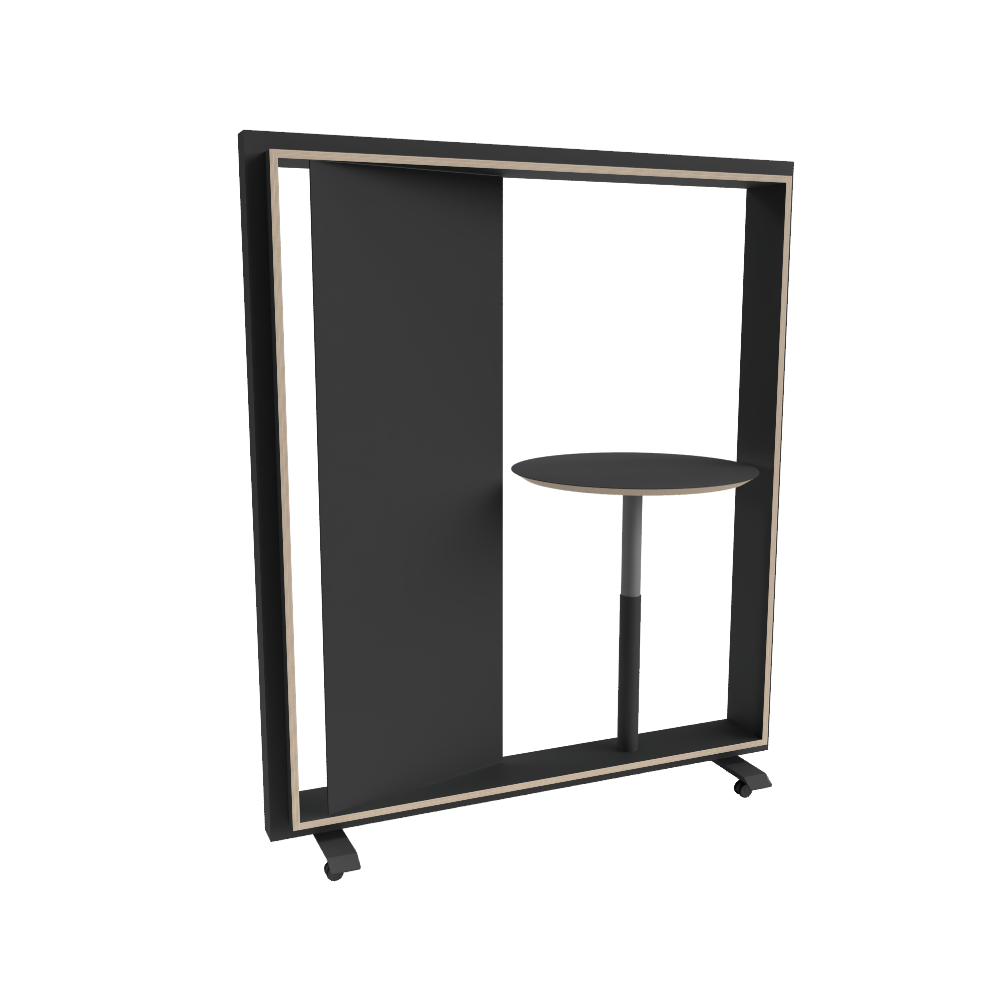 Multifunctionaliteit voor dynamische werkplekken: dit verrijdbare rek is een echte alleskunner. Bijzonder is het aan één zijde geïntegreerde draaibare bord met een antracietkleurig plaatstalen front en een kurken achterkant. Daarnaast is er een ronde werktafel met een diameter van 60 cm geïntegreerd, ideaal voor staande vergaderingen of als tijdelijke werkplek. Een multifunctioneel meubelstuk dat een aanwinst is voor elk modern kantoor.