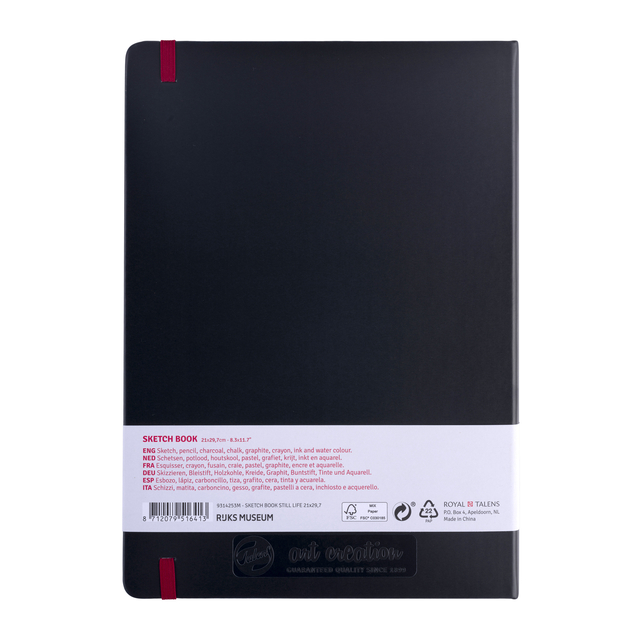 Of je nu een beginnende tekenaar bent of een ervaren kunstenaar, het tekenboek van Qrea is dé perfecte metgezel voor al je creatieve ideeën. Dit stijlvolle A4-boek heeft een stevige zwarte harde kaft met afgeronde hoeken en straalt klasse en duurzaamheid uit. De 80 vellen (160 pagina's) van 100 gram FSC-gecertificeerd papier zorgen voor een soepele tekenervaring, ideaal voor schetsen, tekeningen en notities. Dankzij het handige elastiek blijft het boek netjes gesloten, en door het compacte formaat neem je het gemakkelijk overal mee gericht. Ook verkrijgbaar in A4.