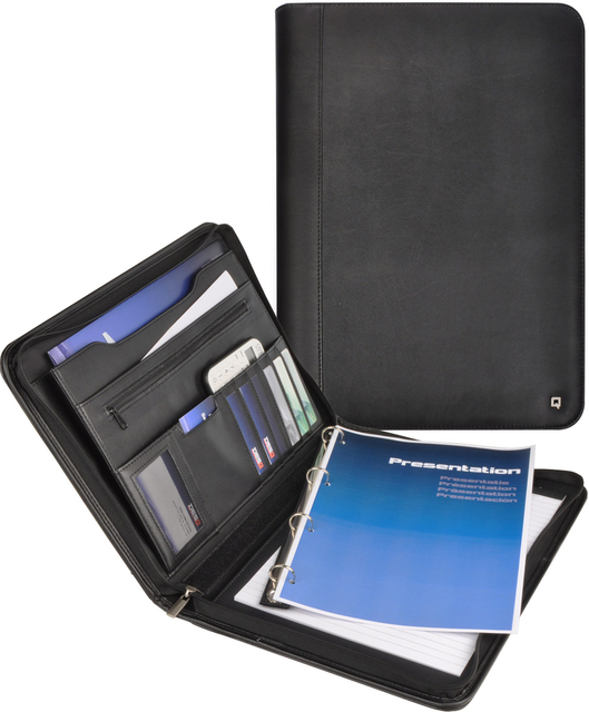 Eigenschappen "Schrijfmap DESQ A4 met rits kunstleder ringmechaniek zwart"