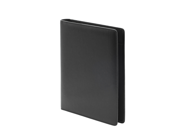 * Nerflederen schrijfmap. * A4 schrijfmap met 25mm ringmechaniek. * Inclusief A4 schrijfblok met 50vel 80gr wit schrijfpapier. * Insteekvak over de volle hoogte. * Klein steekvak en 2 visitekaartvakjes. * Schrijfblok insteek. * Formaat 323mmx260mm.