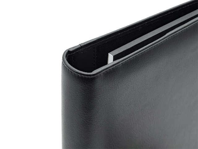 Eigenschappen "Schrijfmap van der Spek A4 4-rings 25mm O-mechaniek leer met nerf zwart"