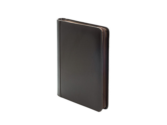 * Royale lederen A4 ritsmap met 25mm mechaniek. * Inclusief A4 schrijfblok met 50vel 80gr wit schrijfpapier. * Veel opbergruimte. * Met een groot en een klein insteekvak en breed ritsvak. * 6 visitekaartvakjes en venstervak. * 2 royale peninsteken ( pen niet inbegrepen). * Schrijfblok insteek met daaronder een groot insteekvak. * Formaat 350x267mm.