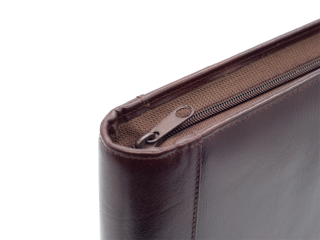 Eigenschappen "Schrijfmap van der Spek A4 leer 4-rings 25mm O-mechaniek + rits bruin"