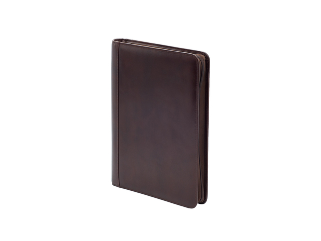 Schrijfmap van der Spek A4 leer 4-rings 25mm O-mechaniek + rits bruin