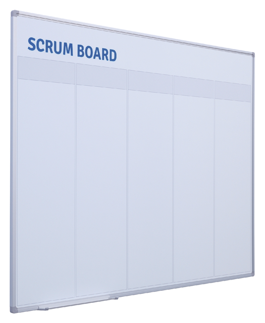 * Het Scrum Bord laat u in één oogopslag de status van uw lopende projecten zien.U creëert zo direct overzicht voor alle betrokkenen. Magneethoudend en drooguitwisbaar.* De Scrum Board starterkit bestaat uit:. * 1x Symbool Post-it groen, set van 5 stuks. * 1x Symbool Post-it geel, set van 5 stuks. * 1x Symbool Post-it oranje, set van 5 stuks. * 1x Symbool Post-it rood, set van 5 stuks. * 1x Symbool Attention geel/zwart, set van 5 stuks. * 1x Symbool Ster geel/zwart, set van 5 stuks. * 1x Boardmarkers assorti, set van 4 stuks. * 1x Penhouder wit horizontaal, magnetisch. * 1x Viltwisser Pro, magnetisch voor whiteborden.