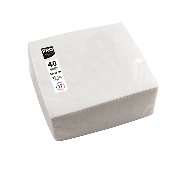 Pak van 40 2-laags micro gewafelde watten servetten - Formaat 38x38 cm Onze 2-laags servetten bieden optimaal comfort en geven uw tafel de elegante uitstraling die ze verdient, zowel op restaurant als thuis, bij elke gelegenheid: verjaardagen, huwelijken, doopfeesten, Kerstmis. Dankzij de dubbele micro wafelstructuur zijn ze dik en stevig genoeg voor al uw creatieve vouwwensen. Het formaat van 38x38 cm wordt vooral gebruikt bij buffetten, barbecues, en bij informele en chique etentjes aan tafel. Deze servetten zijn FSC®-gecertificeerd, gemaakt van grondstoffen afkomstig van verantwoord beheerde bronnen. Producten vervaardigd in Frankrijk en gecertificeerd als geschikt voor voedselcontact. Materiaal dat in de massa wordt gekleurd, waardoor de kleuren niet vervagen of verbleken bij blootstelling aan licht.