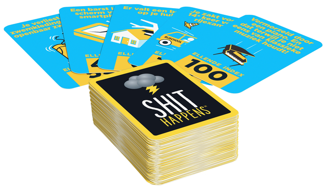 * Na de populaire Shit Happens 18+ editie hebben we nu ook een variant die geschikt is voor het gezin (14+). De Shit Happens Familie Editie is een leuk en brutaal gezelschapsspel waarin je de ergste situaties ooit tegenkomt. Het is aan de spelers om ze correct te rankschikken op de Shit’O’Meterschaal van 1 tot 100. Nu in een handige pocket editie! * SPELOMSCHRIJVING: Alle kaarten in dit spel hebben een ranking van 1 (niet erg) tot 100 (heel erg). Iedere speler krijgt 3 kaarten uitgedeeld, die hij/zij voor zich neer legt in gerangschikte volgorde (minst erg links, ergste rechts). Dit vormt de basis. * Vervolgens leest de speler rechts een nieuwe kaart voor, zonder deze te laten zien. Het is nu de bedoeling aan de speler om te raden of deze nieuwe kaart milder of erger is dan de basis, of ergens tussenin. * Raad je het goed? Dan leg je de kaart bij het rijtje neer. Wie het eerste 10 kaarten heeft liggen, wint het spel! * Handige tip: Om spelers in staat te stellen zichzelf in te leven in de gegeven situatie en te raden waar de kaart past op de Ellende index, is het belangrijk dat de lezer de illustratie laat zien (terwijl hij de Ellende index-waarde ervan verbergt). * INHOUD SHIT HAPPENS FAMILIE EDITIE: 110 Shit Happens kaarten.