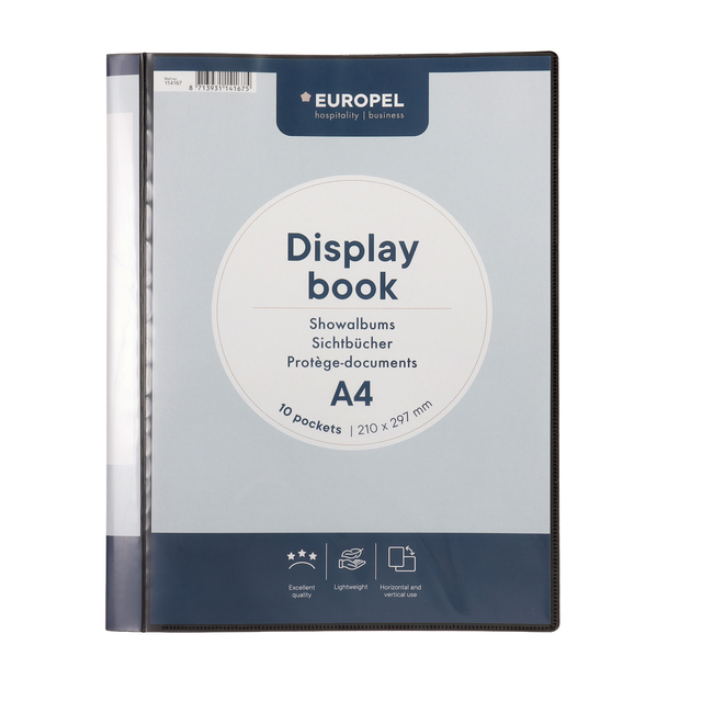 Eigenschappen "Showmap Europel Frontview A4 10-tassen antraciet"