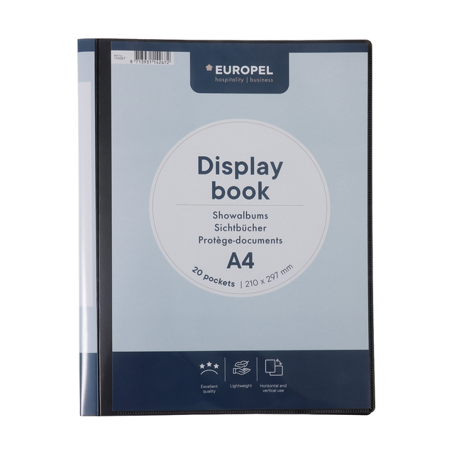 Eigenschappen "Showmap Europel Frontview A4 20-tassen antraciet"