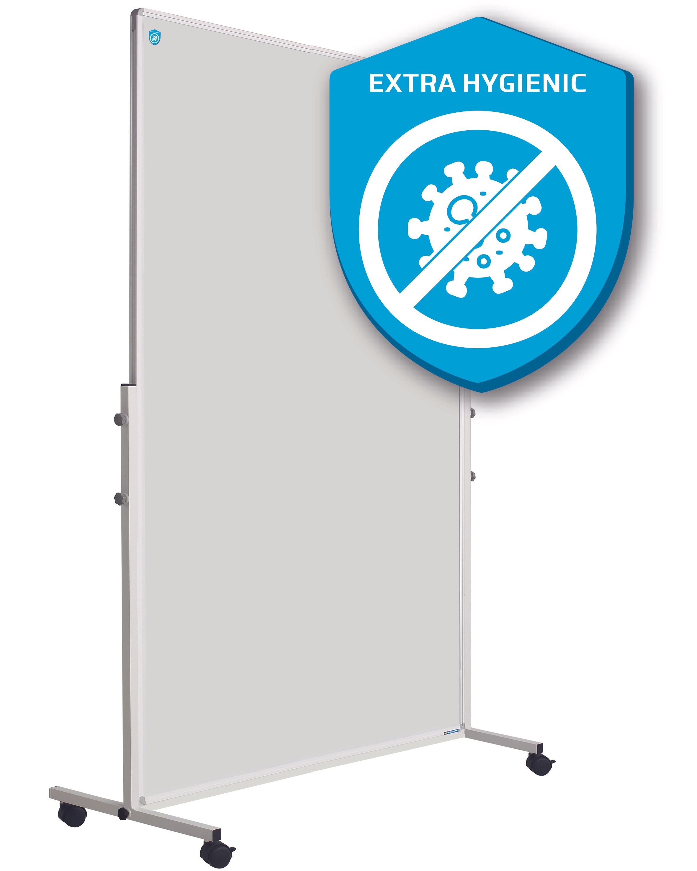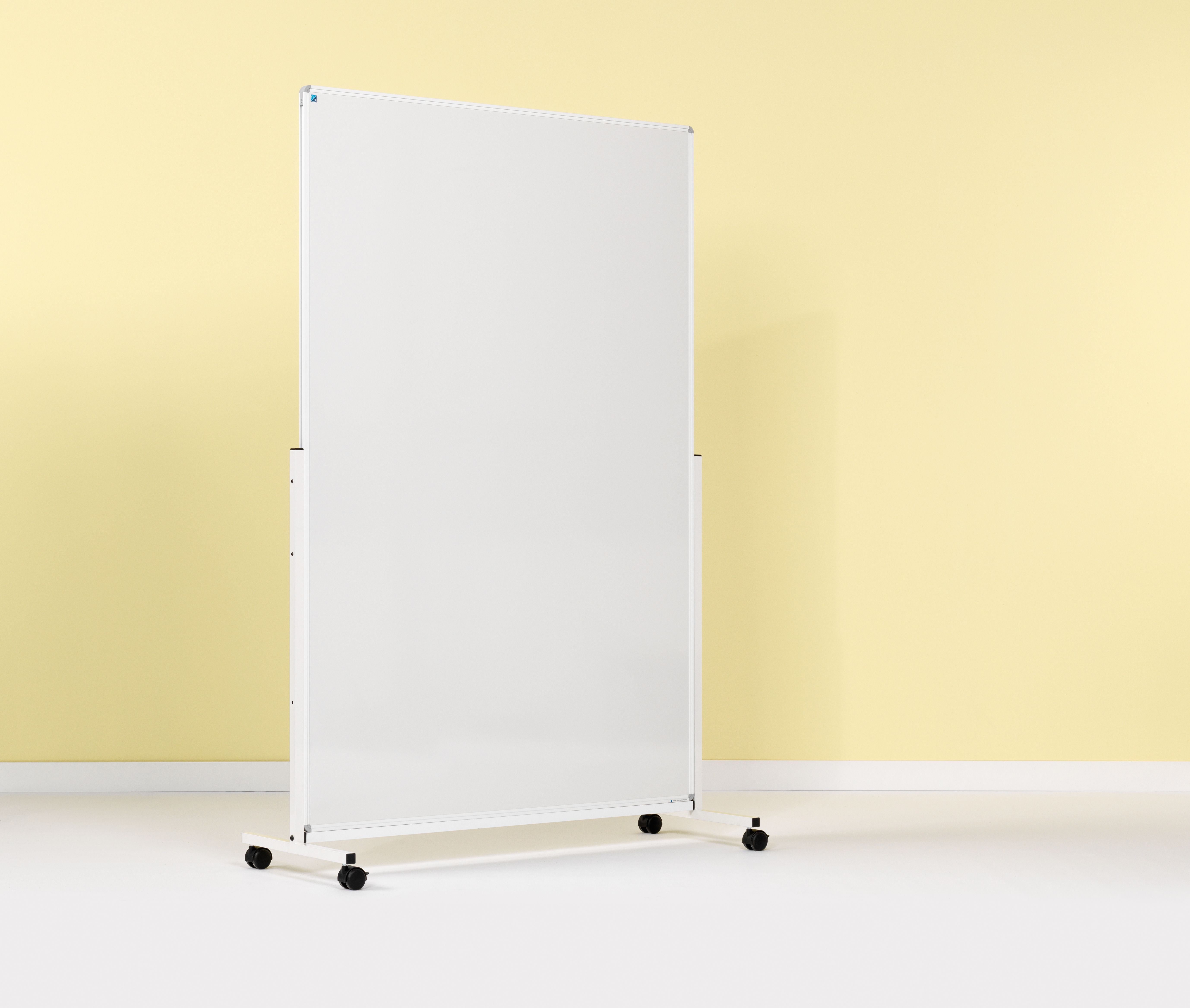 Dubbelzijdig beschrijfbaar whiteboard op een frame met 4 vergrendelbare wielen. Het simpele design maakt het geheel stevig en tegelijkertijd licht van gewicht. Voorzien van een dubbelzijdig gelakt stalen oppervlak voor regelmatig gebruik. Eenvoudig te monteren.