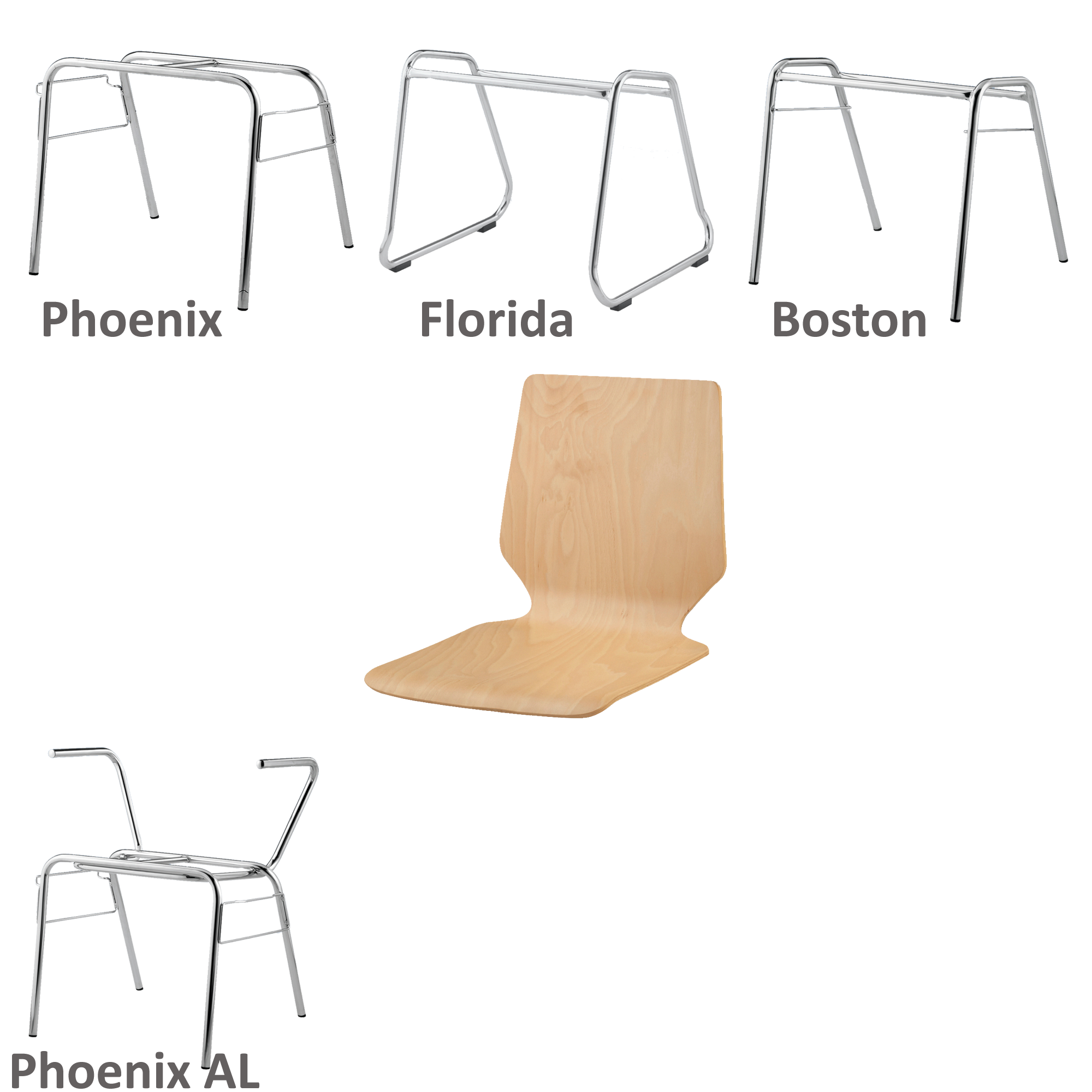 De stapelbare kuipstoel met zitschaal "Berlin" is te bestellen met buisframes in verschillende uitvoeringen, met en zonder armleuningen en/of rijverbinding. De zitschaal bestaat uit meervoudig verlijmd, vormgeperst beuken multiplex en is ergonomisch afgewerkt, met een natuurlijke finish. Deze stoelen zijn naar keuze leverbaar met zit- en rugbekleding, met handgreepgat of designfrezen.