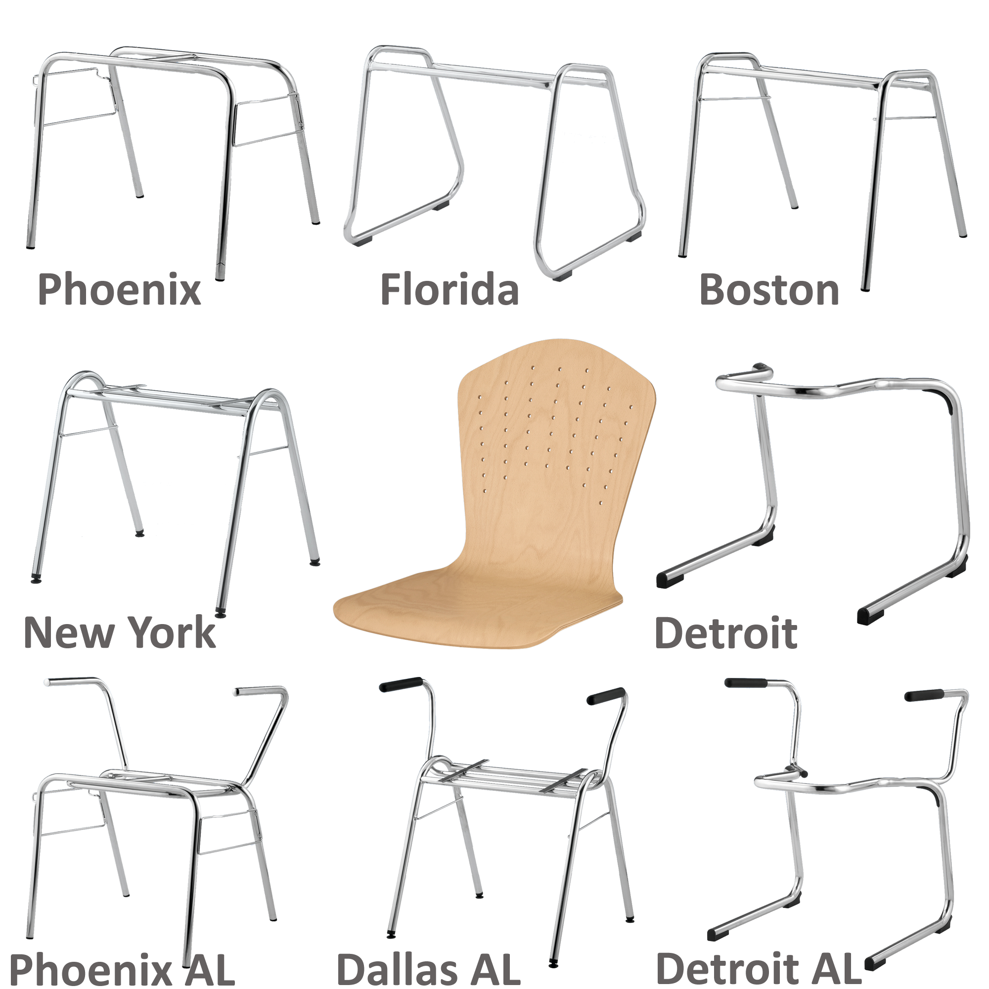 De stapelbare kuipstoel met zitschaal "London" is te bestellen met buisframes in verschillende uitvoeringen, met en zonder armleuningen en/of rijverbinding. De zitschaal bestaat uit meervoudig verlijmd, vormgeperst beuken multiplex en is ergonomisch afgewerkt, met een natuurlijke finish. Deze stoelen zijn naar keuze leverbaar met zit- en rugbekleding, met handgreepgat of designfrezen.