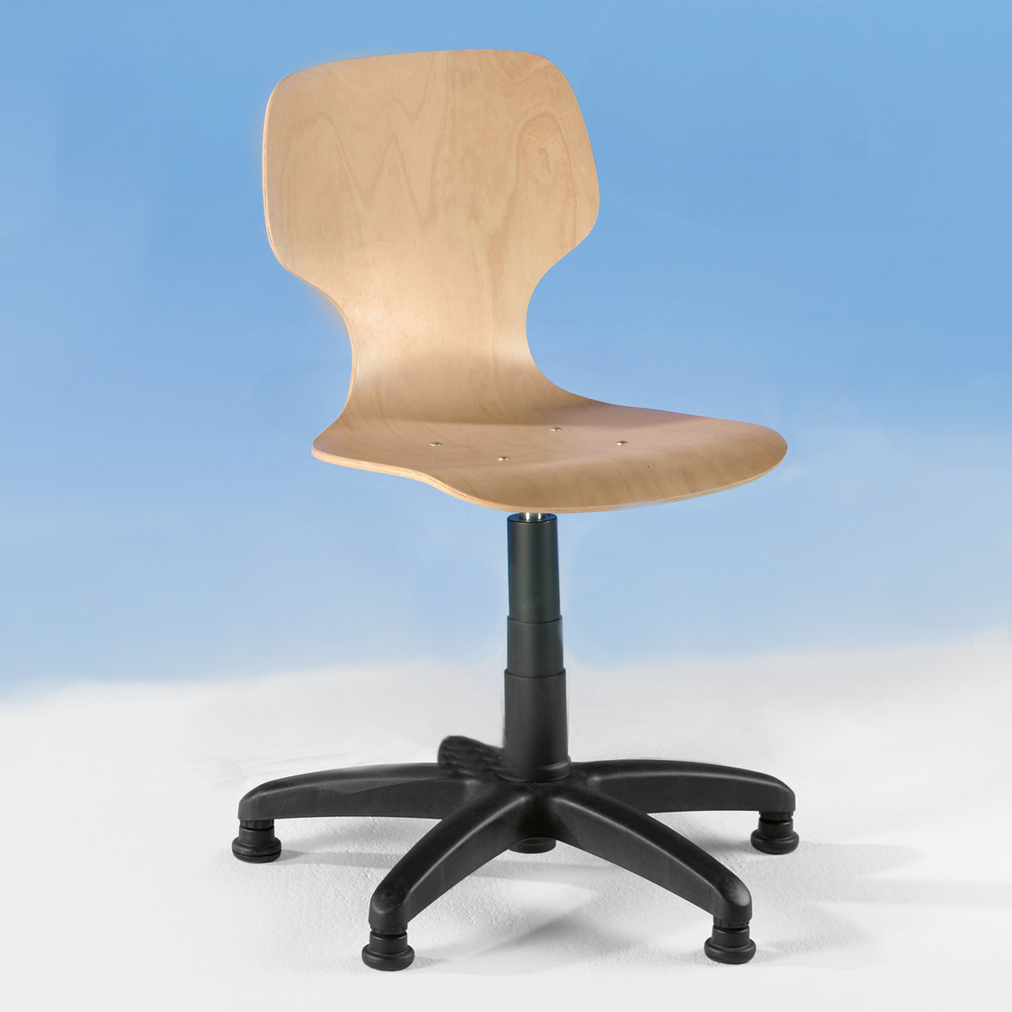 De bureaustoel is dankzij de draaispindel hoogteverstelbaar van 48 tot 67cm. De zitschaal is vervaardigd uit multiplex beuken en is tegen het uitdraaien beveiligd .De stoel is statisch dankzij een zwart polyamide voetenkruis dat uitgerust is met 5 stabiele kunststof glijders.Specificaties:Statisch middels glijdersZithoogte: 48-67cmhoogteverstelbaar middels draaispindel
