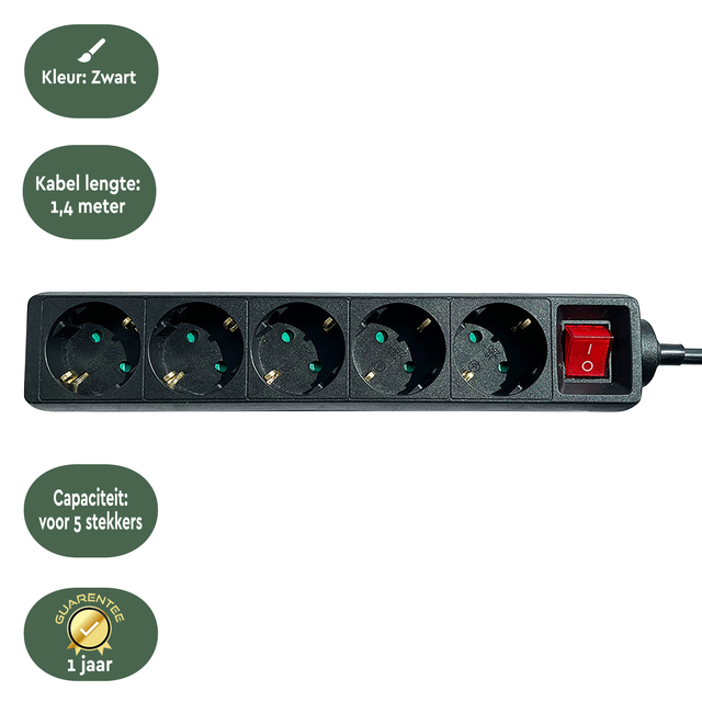 Eigenschappen "Stekkerdoos BRASQ 5 voudig 1.4 meter zwart"