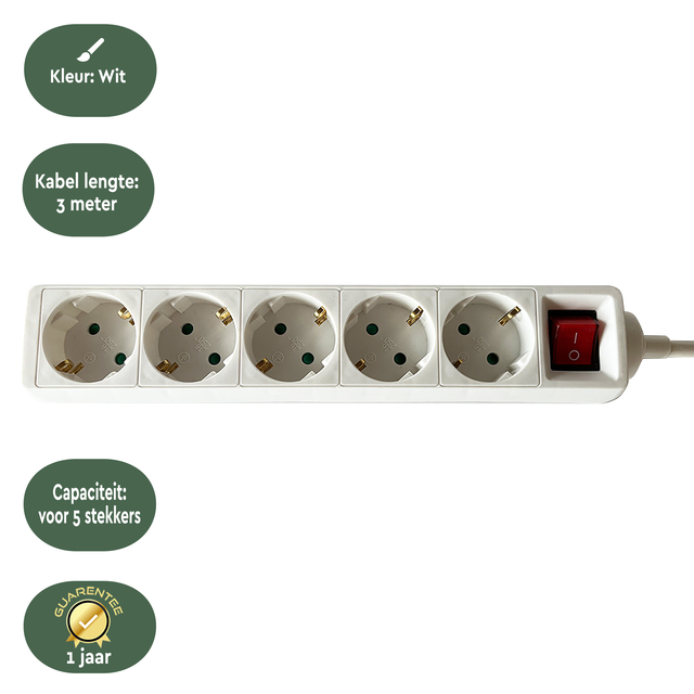* Nooit meer een stopcontact te kort! Deze BRASQ Stekkerdoos, in witte kunststof uitvoering, met 5 stopcontacten is een echte handige must-have en een onmisbaar hulpmiddel in het moderne huishouden en op kantoren. Sluit al je elektrische apparaten aan, zoals tv's, huishoudelijke apparaten, gadgets en (spel)computers aan op deze 3-voudige stekkerdoos met schakelaar. De stekkerdoos met 3 sockets, die geschikt is voor binnenshuis gebruik, is voorzien van geaarde stopcontacten en een hoofdstekker met randaarde. De stekkerdoos is direct klaar om te gebruiken en geschikt voor geaarde en niet-geaarde apparaten. Met zijn handige aan-uit schakelaar kun je gemakkelijk de toevoer van elektriciteit regelen, waardoor je zelf ook het energieverbruik in huis of kantoor bepaald. De schakelaar is uitgerust met verlichting, zodat je ook in het donker duidelijk kunt zien of de schakelaar is ingeschakeld of niet. Door de handige schuine plaatsing van de stopcontacten kunnen er makkelijker haakse stekkers op worden aangesloten. * De stekkerdoos met schakelaar voldoet aan alle veiligheidseisen die betrekking hebben op dit product. Hij is voorzien van een ROHS, TUV GS en CE certificaat. * De contactpunten zijn voorzien van kinderbeveiliging. Door het gepatenteerde systeem is het niet mogelijk om voorwerpen in de stopcontacten te steken. * Overbelasting van een stekkerdoos kan leiden tot oververhitting en zelfs brandgevaar. Daarom is het cruciaal om te weten wat het maximale vermogen is dat de stekkerdoos aankan en deze limiet niet te overschrijden. * De zekering of overspanningsbeveiliging beschermt de aangesloten apparaten tegen piekspanningen en kortsluitingen. * Bovendien is het belangrijk om stekkerdozen regelmatig te controleren op tekenen van slijtage, beschadiging of loszittende onderdelen. * Met de BRASQ Stekkerdoos haal je dus kwaliteit en veiligheid in huis! * Afmetingen: 62 x 5 x 4 cm (lxbxh) * Capaciteit: 3 stekkers * Materiaal: Kunststof * Hoofdschakelaar: Aan/uit schakelaar * Voeding: Netstroom * Hoofdstekker: Randaarde * Stopcontact: Schuko Type F (randaarde) * Aansluiting: 3-polig * Max. belasting: 3600W Nominale stroom: 230V/16A * Draaddikte: 3 x 1,5mm * Kinderbeveiliging: Ja * Kabellengte: 3 M * Keurmerken: ROHS, TUV GS en CE certificaat * Garantie: 1 jaar