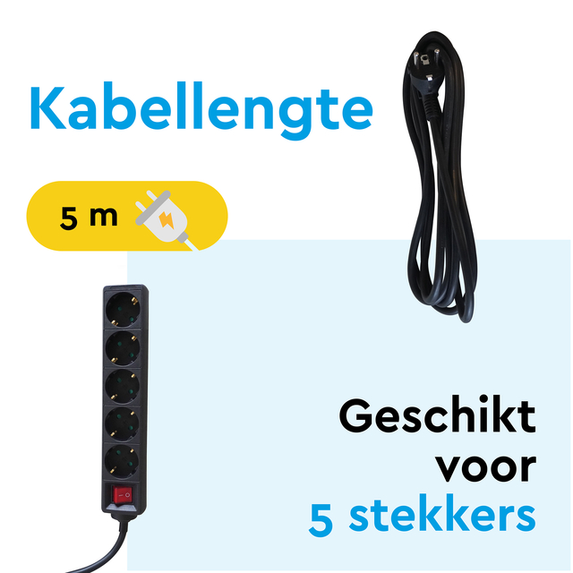 Eigenschappen "Stekkerdoos BRASQ 5 voudig 5 meter zwart"