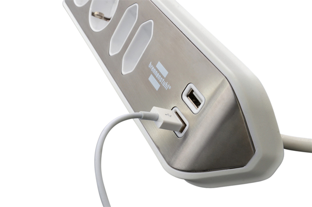 Eigenschappen "Stekkerdoos Brennenstuhl bureau Estilo 4 voudig inclusief 2 USB 2 meter wit/zilver"