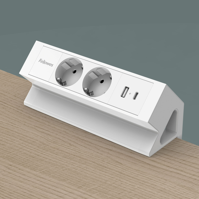 Stekkerdoos Fellowes Power Desk F 2 voudig incl USB A en C 2 meter wit