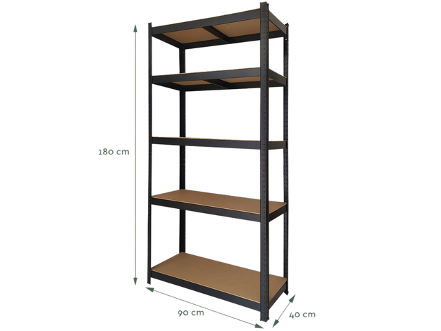 Eigenschappen "Stellingkast BRASQ 5 borden 90x40x180cm SU175 max 875 KG zwart"