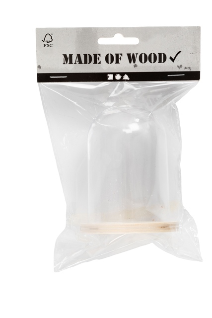 * Ronde stolp van plexiglas met losse houten voet, klaar om gevuld te worden met creatieve ideeen. De ronde stolp van plexiglas kan zowel hangen als staan. Door het gat van 3 mm bovenin de stolp kan een ophangkoord aangebracht worden. Als je de stolp wilt ophangen, raden we aan om de houten basis vast te lijmen. De stolp is te vullen met leuke klei figuren, leuke (zelfgemaakte) seizoensartikelen of andere creaties. * Hoogte stopp: 9,5cm. * Diameter van stolp: 6cm. * Materiaal stolp: Plexiglas met Triplex bodem.