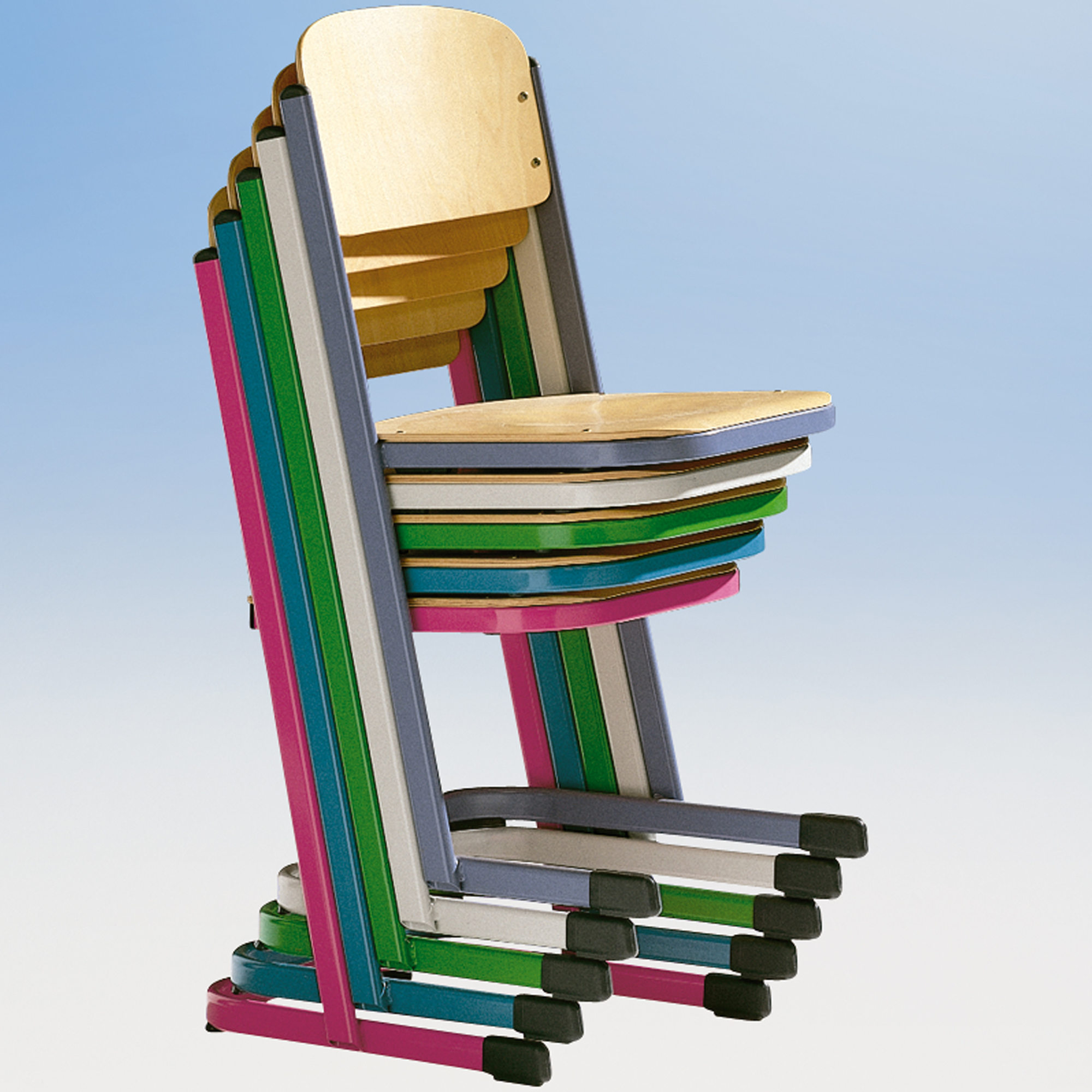 De zitting en rugleuning van de ST 40 serie ergonomische schoolstoel ondersteunen een ontspannen en rechte zithouding. De zitting en rugleuning van de leerlingstoel zijn gemaakt van hoogwaardig, meerlagig beukenmultiplex met een natuurlijke beukenlook. Het oppervlak is verzegeld met blanke lak op waterbasis. Indien gewenst kunt u kiezen tussen een open of gesloten zitondersteuning met knierol. De schoolstoel ST 40 wordt ondersteund door een U-vormig frame van ovale precisiebuizen in het formaat 40x20 mm, dat voor een bijzondere stabiliteit zorgt. Daarnaast is de leerlingstoel voorzien van een beveiliging tegen optillen. De uiteinden van de buis zijn afgesloten met recyclebare, afgeronde doppen van ABS-kunststof, die indien nodig ook verkrijgbaar zijn met viltjes. De voetbuis is voorzien van een opstapbescherming 70x25 mm. Alle stalen onderdelen zijn ook verkrijgbaar in verschillende RAL-kleuren. De zithoogte van de stoel is gebaseerd op DIN ISO 5970.