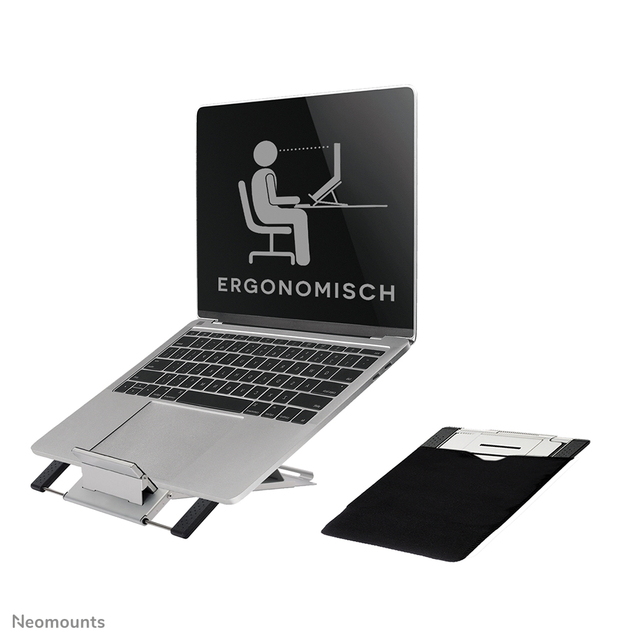 * Universele iPad/notebook standaard waarmee u uw iPad/notebook ergonomisch op uw bureau plaatst. * Gemakkelijk verstelbaar in 6 standen ideaal voor de juiste kijkhouding ten opzicht van de Ipad / notebook. * Door zijn design eenvoudig in te klappen, licht gewicht en mobiel. * De breedte van de standaard is verstelbaar waardoor de meeste laptops en alle iPads op deze steun geplaatst kunnen worden. * Het unieke design laat warme lucht eenvoudig wegstromen waardoor oververhitting wordt voorkomen. * De standaard wordt geleverd inclusief hoes, welke ook te gebruiken is als muismat.