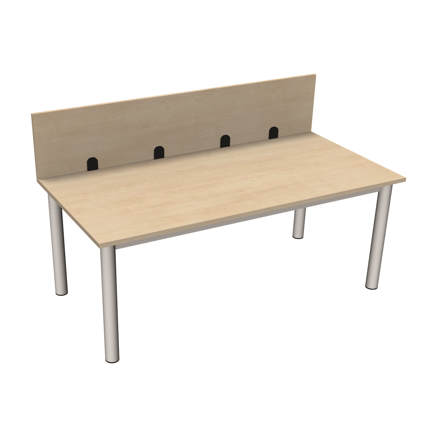 Rechthoekige tafel met bovenblad. Het volledig gelaste vierpoots frame van ronde buis met poten Ø 60 x 2 mm van meubelprofielbuis wordt gepoedercoat in de door u gewenste kleur volgens onze RAL-kleurentabel. Het tafelframe is uitgerust met hoogteverstellers voor vloernivellering. Het decor kan worden gekozen voor het tafelblad van 19 mm E1 fijnspaanplaat met geperste melamineharscoating, alle randen zijn afgesloten met 2 mm ABS-kunststof rand in hetzelfde decor als het tafelblad.
