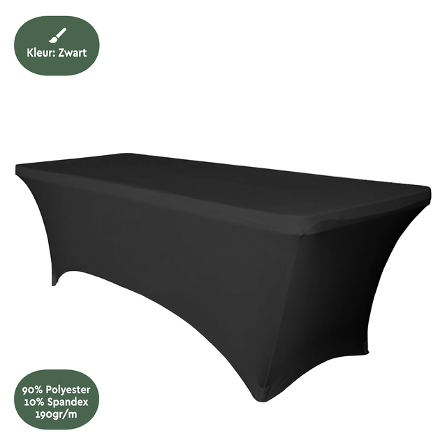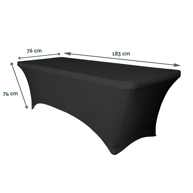 * Deze luxe BRASQ Tafelrok, voor vouwtafels met een afmeting van 180x70x74 cm, is de perfecte aanvulling op elk evenement. Het hoogwaardige materiaal en de stijlvolle afwerking geven de vouwtafel een feestelijke en chique uitstraling. De hoes is speciaal ontworpen voor langwerpige vouwtafels en daarmee een perfecte match met de BRASQ Vouwtafels dus. De rekbare stretchstof zorgt ervoor dat de tafelhoes naadloos om de tafel past en de hoeken aan de onderzijde zijn voorzien van stevig elastiek. Deze ingenaaide voetjes zorgen ervoor dat de hoes goed blijft zitten en minder snel slijt. Het is een simpel karweitje om de hoes om de tafel te schuiven, wat je ook eenvoudig in je eentje doet. Maar dat is nog niet alles. Deze vouwtafelhoes is ook nog eens makkelijk te onderhouden. Wanneer de hoes vies is geworden, kan je hem gemakkelijk wassen. Hang hem direct na het wassen op om kreuken te voorkomen en je tafelrok is weer als nieuw. Of je nu een feestje geeft, een zakelijke bijeenkomst organiseert of een andere gelegenheid hebt, met deze vouwtafelrok maak je gegarandeerd een goede indruk. * Specificaties: Afmeting product: 183x76x74cm (lxbxh) * Materiaal product: 10% spandex ,90% polyester
