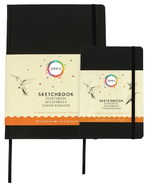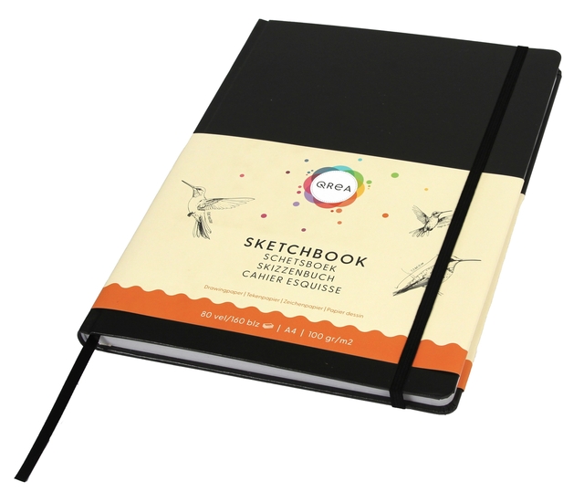 Tekenboek Qrea A4. Of je nu een beginnende tekenaar bent of een ervaren kunstenaar, het tekenboek van Qrea is dé perfecte metgezel voor al je creatieve ideeën. Dit stijlvolle A4-boek heeft een stevige zwarte harde kaft met afgeronde hoeken en straalt klasse en duurzaamheid uit. De 80 vellen (160 pagina's) van 100 gram FSC-gecertificeerd papier zorgen voor een soepele tekenervaring, ideaal voor schetsen, tekeningen en notities. Dankzij het handige elastiek blijft het boek netjes gesloten, en door het compacte formaat neem je het gemakkelijk overal mee gericht. Ook verkrijgbaar in A4. Kenmerken: * Formaat: A4. * Aantal vellen: 80 (160 pagina's). * Papiergewicht: 100 gram. * Kaft: harde zwarte kaft met afgeronde hoeken. * Extra: voorzien van elastiek. * Duurzaamheid: FSC-gecertificeerd papier. * Herkomst: geproduceerd in België. * Extra: ook verkrijgbaar in A5-formaat.
