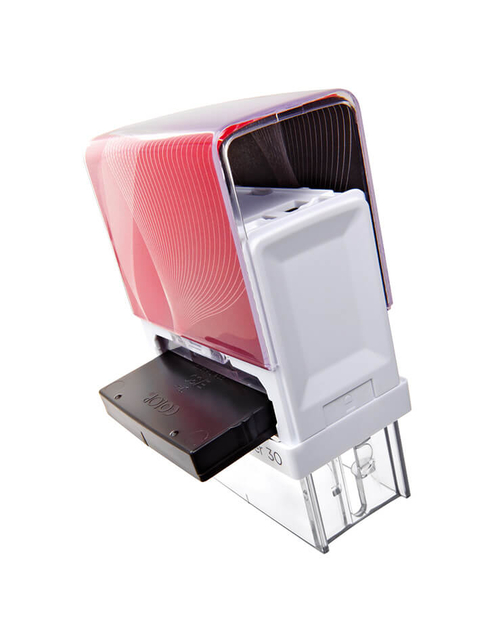 * Zelfinktende stempelautomaat. * Inclusief rood ingebouwd inktkussen. * Tekstopdruk inbegrepen in de prijs. * Wit/transparant montuur. * De stempeltekst is volledig leesbaar in het gebogen indexvenster. * Verwisselbaar stempelkussen. * CO2-neutraal geproduceerd.