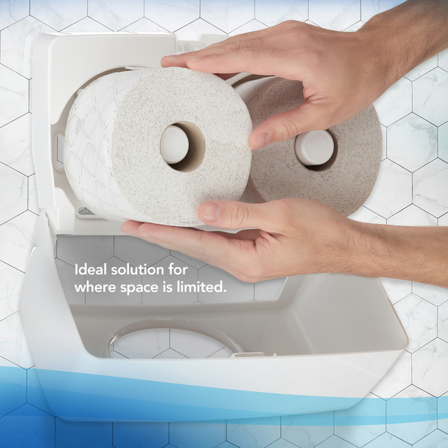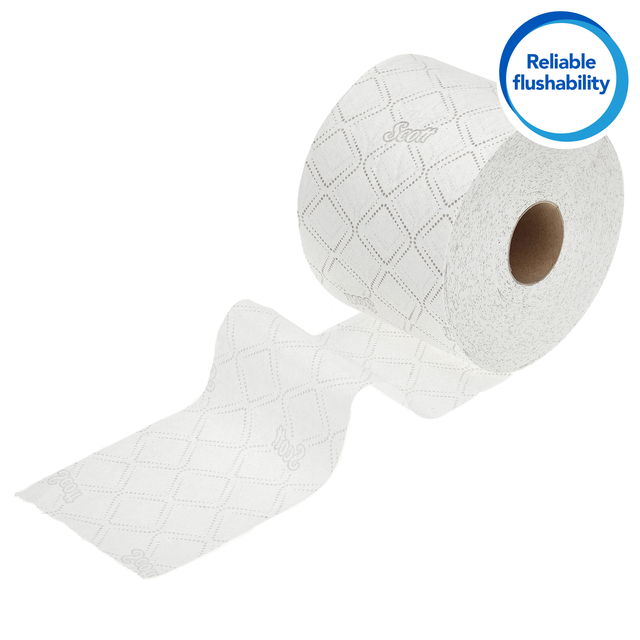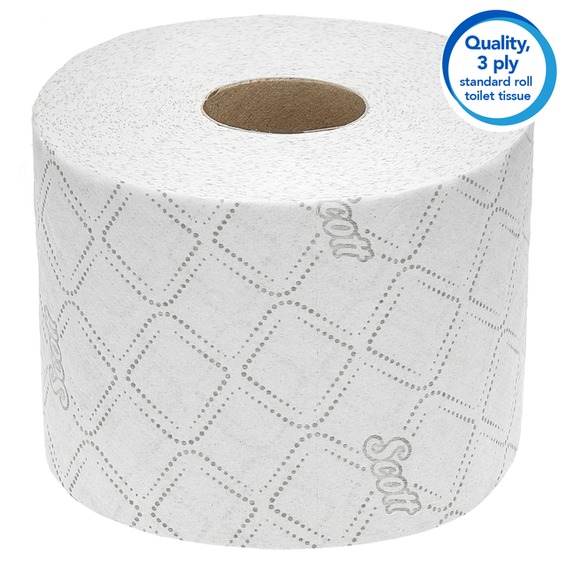 * Scott Essential, 8519, Standaard wc rol, 2-laags, Wit, 64 rollen x 350 vellen * Voor betrouwbaarheid in drukke toiletruimten die consistentie, kwaliteit en waarde van een van de meest betrouwbare merken ter wereld vereisen, kiest u Scott® Essential™ Toiletpapier. Een standaardrol wc papier van hoge kwaliteit die voor efficiënte toiletruimten zorgt. * Scott® Essential™ Standaard wc rol is de ideale oplossing voor plaatsen waar de ruimte beperkt is. * Compatibel met Aquarius™ Dubbel Rol wc papier Dispensers in wit en zwart (productcodes 6992 en 7191) en past op de meeste standaard wc rollen Dispensers voor rollen met kern. * Voor milieuzekerheid is Scott® Essential™ Standaardrol toiletpapier gemaakt van 100% gerecyclede vezels, voorzien van het FSC-certificaat en het Europese Ecolabel en goed doorspoelbaar. * Elke omdoos bevat 64 rollen van 350 2-laags vellen van 12 x 9,5 cm. 64 rollen x 350 witte, 2-laags doeken (22.400 in totaal)