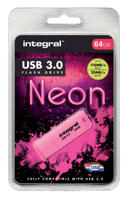 USB-stick 3.0 Integral 64GB neon roze
