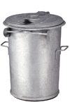 GEGALVANISEERD STALEN VUILNISBAK 90L Zware gegalvaniseerde stalen en brandvertragende vuilnisbak met deksel. Bestand tegen vorst hitte en veel chemicalien. Handgrepen aan beide zijden. Kleur: verzinkt Formaat: 530 H 810 mm