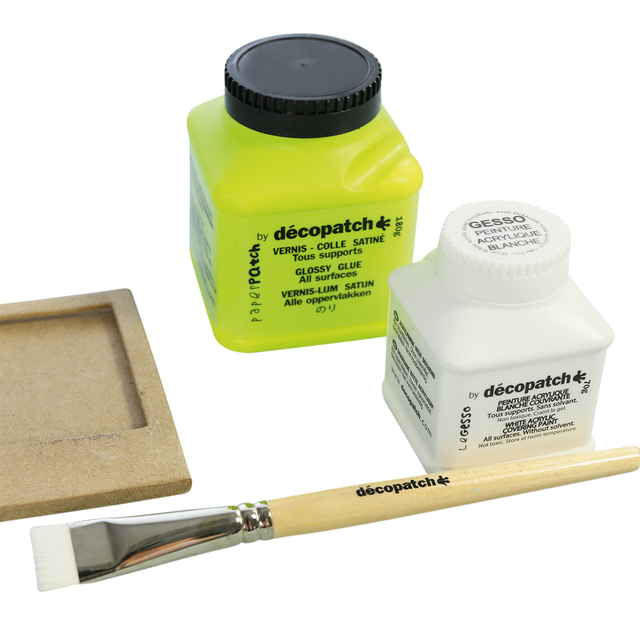 Decopatch is al talloze jaren mateloos populair onder knutselaars en mensen met een creatieve inslag. Décopatch gesso kan worden gebruikt op alle materialen (glas, metaal, hout, plastic, polystyreen, keramiek, terracotta, karton, papier-maché, enzovoort), evenals op alle soorten oppervlakken, of ze nu plat of onregelmatig zijn. De vernis verbetert de bescherming van Décopatch lijm, waarmee het perfect compatibel is. de Gesso wordt gebruikt als grondlaag: Het zorgt ervoor dat de te decoreren objecten een uniforme en witte uitstraling hebben, waardoor de patronen van het Décopatch papier (niet inbegrepen) levendiger worden. * Tip! Breng een gesso-onderlaag aan op een reeds gedecoreerd object om het een frisse nieuwe uitstraling te geven. * Inhoud: 300ml dekkende witte verf (gesso). * Geproduceerd in Frankrijk, nabij Lyon (69).