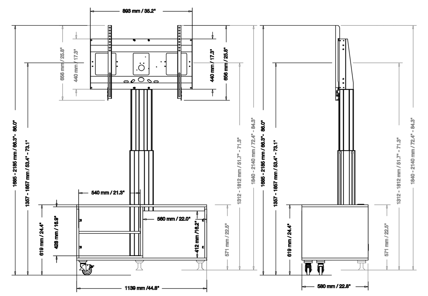 Verrijdbaar TV meubel met elektrische hoogteverstelling "VSM electric"