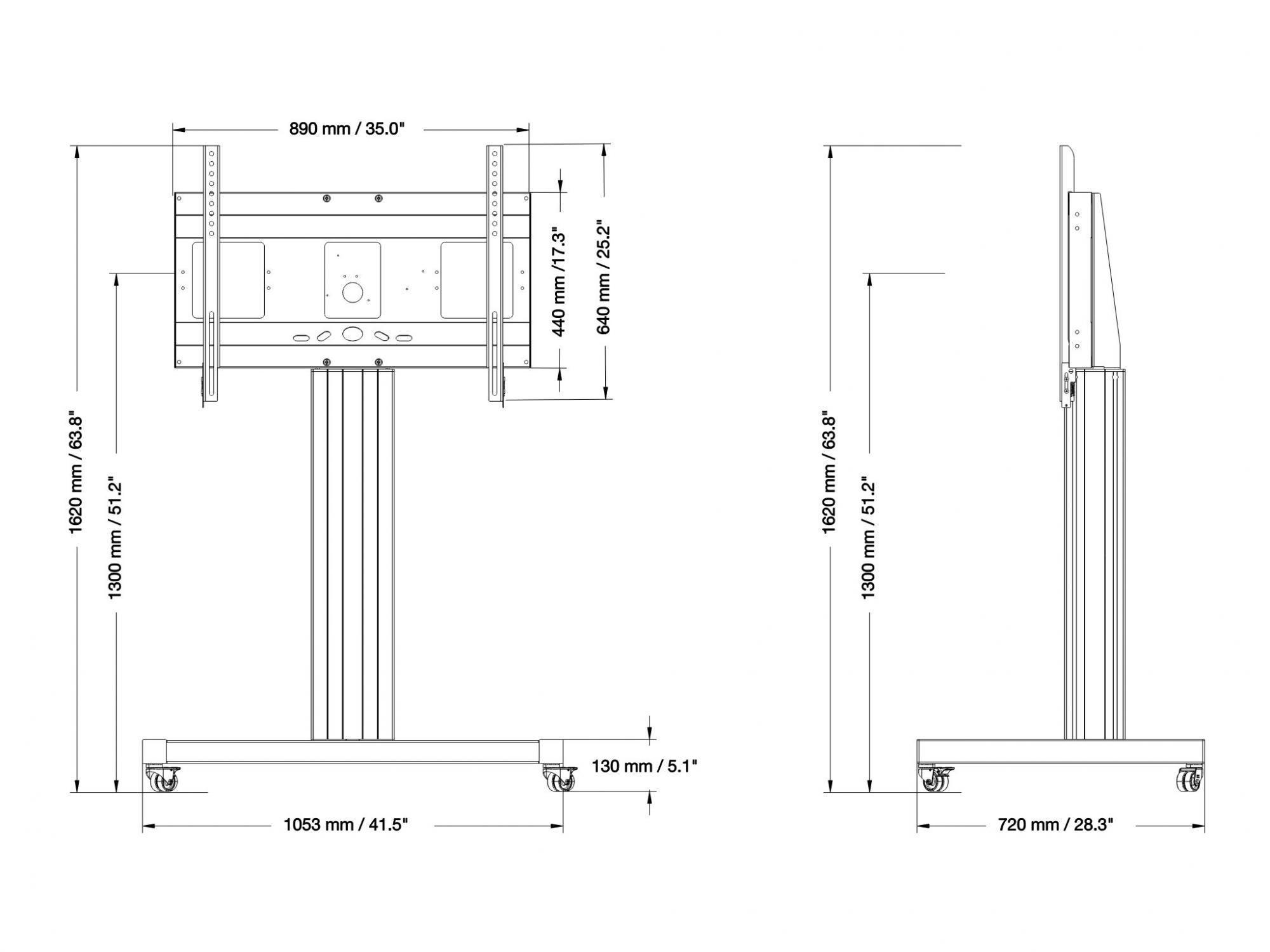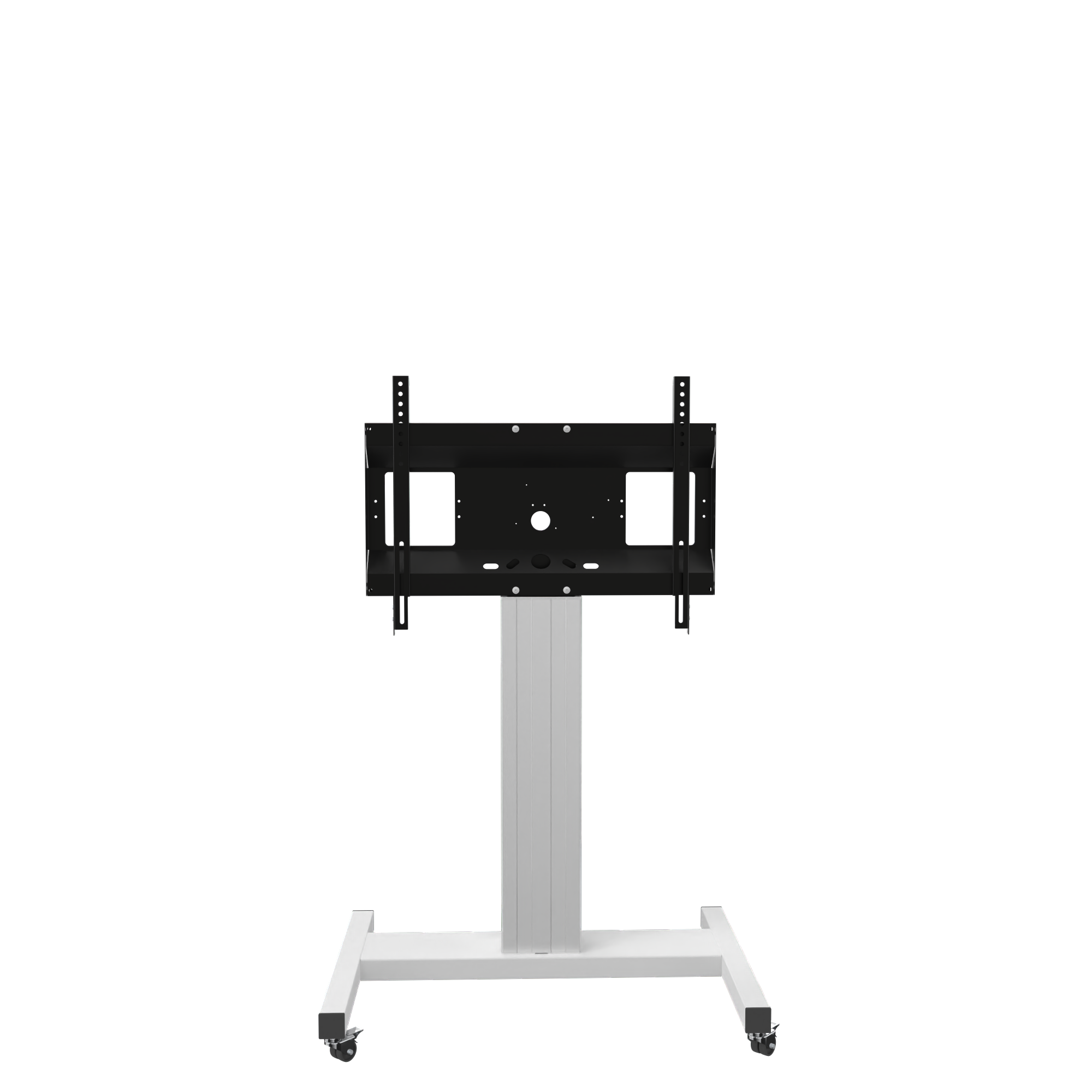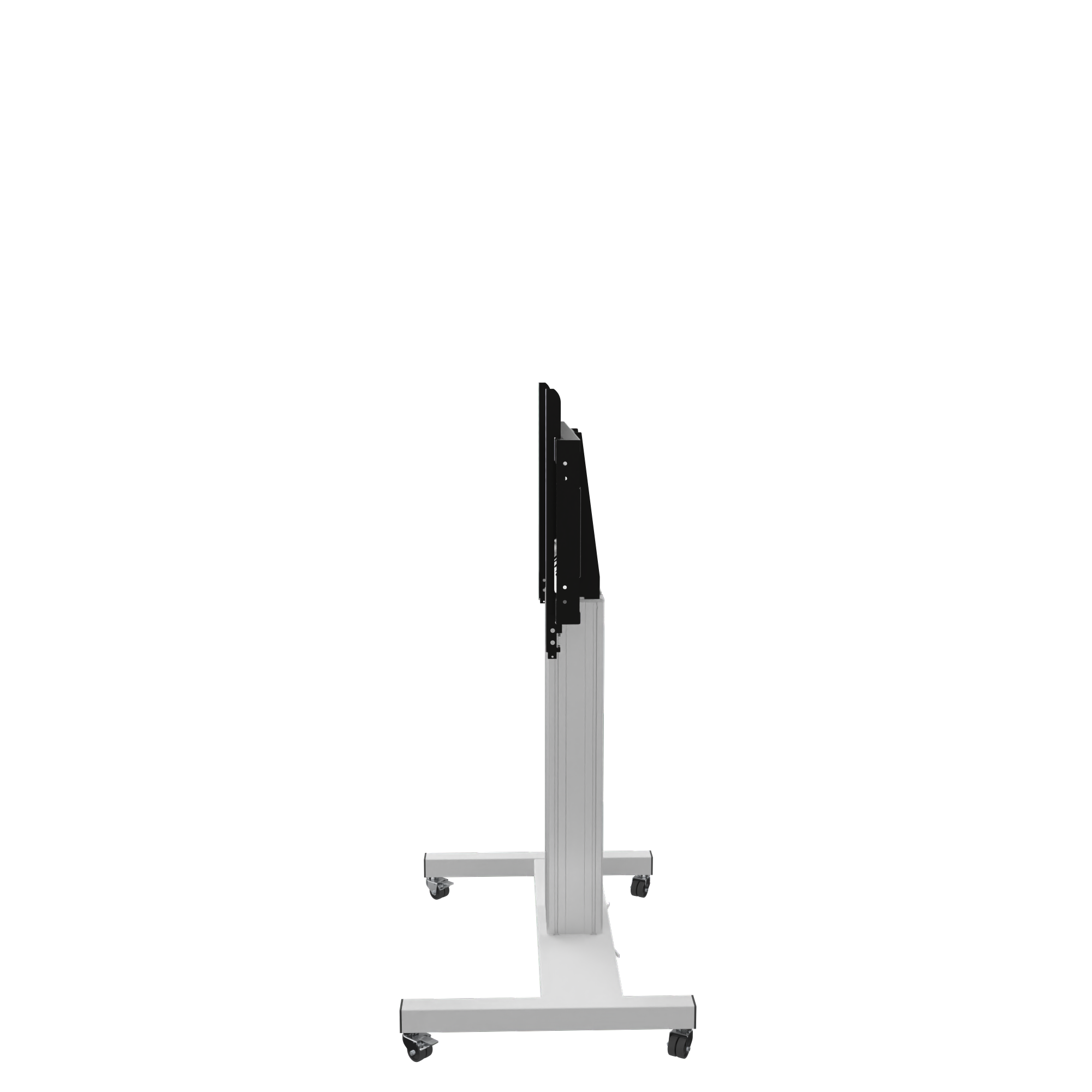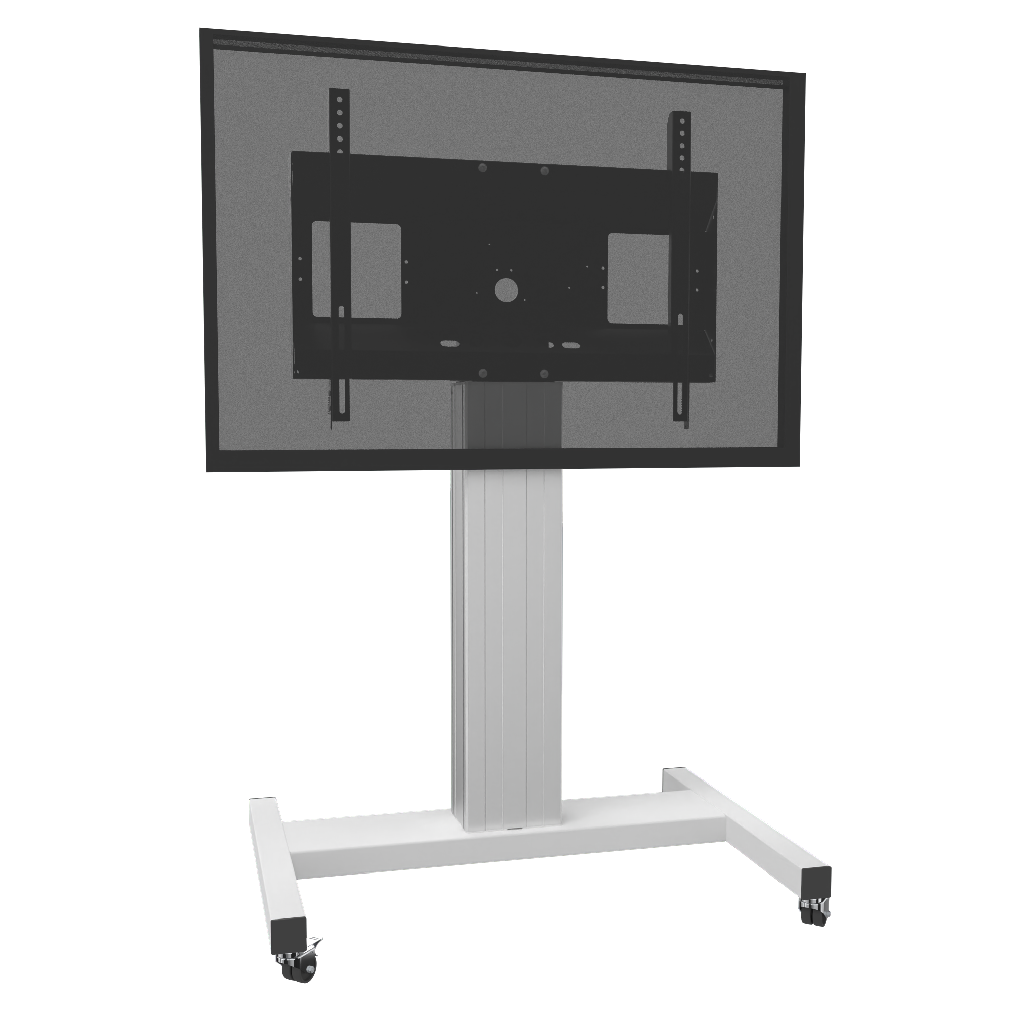 Tv-trolley voor touchscreen monitoren met een diagonaal van 42"-100". Voor toepassingen waarbij niet per se een hoogteverstelling nodig is, biedt Conen Mounts een reeks niet in hoogte verstelbare tv-trolleys. De rolstaanders zijn voorzien van een centrale aluminium kolom van verschillende hoogtes. De beeldschermbevestiging wordt boven de middenkolom gemonteerd. Dit biedt de mogelijkheid om de kabels achter het display op te bergen. De mobiele monitorbeugel is voorzien van het H-vormige rolframe. Het H-frame is voorzien van vier met rubber beklede lichtlopende zwenkwielen, waarvan twee met parkeerrem. Het systeem wordt gedemonteerd geleverd in drie verpakkingseenheden. Verzenden kan per pakketdienst.