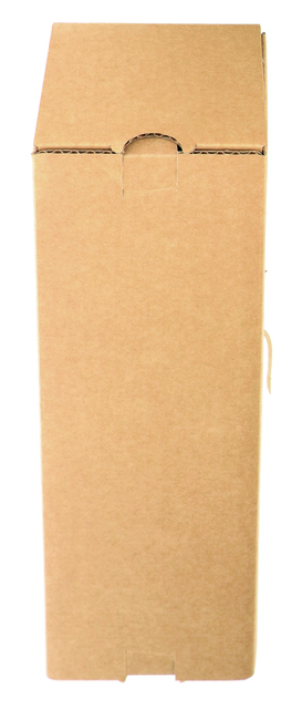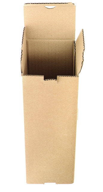 * Verzenddoos geschikt voor het verzenden van 1 fles. * De doos is voorzien van een flesseninterieur wat zorgt voor een optimalen bescherming tijdens verzending. * De doos is gemaakt van enkel golfs karton en heeft een binnenmaat van 90x90x360mm in gevouwen vorm.