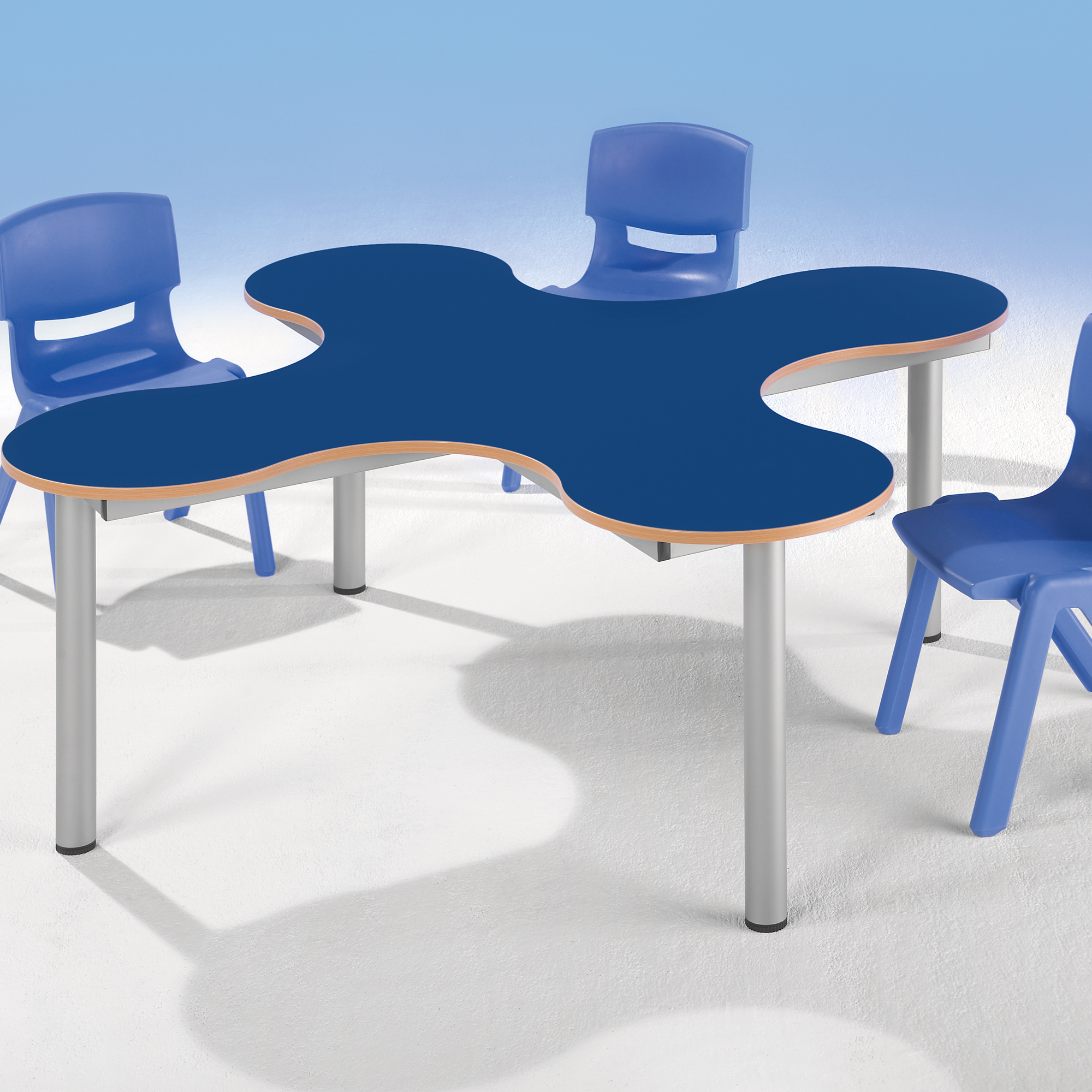 Vierzits klaverblad tafel, in hoogte verstelbaar, met melamine blad