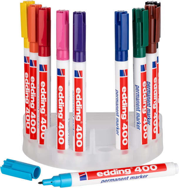 Eigenschappen "Viltstift edding 400 rond 1mm met houder assorti set à 10 stuks"