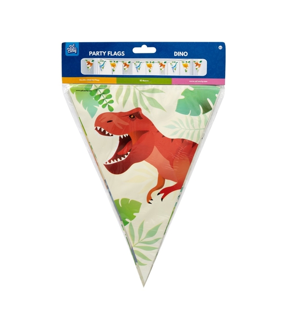 Een kinderfeestje kan niet zonder vlaggetjes en als je deze party flags foil Dino koopt dan haal je direct een vlaggenlijn met een uniek thema in huis! De vlaggetjes zijn gemaakt van folie en de vlaggenlijn is 10 meter lang. De vlaggenlijn kan gecombineerd worden met de overige leuke feestversiering en tafeldecoratie met hetzelfde thema. Je hebt direct alles in huis om het feestje tot een succes te maken.