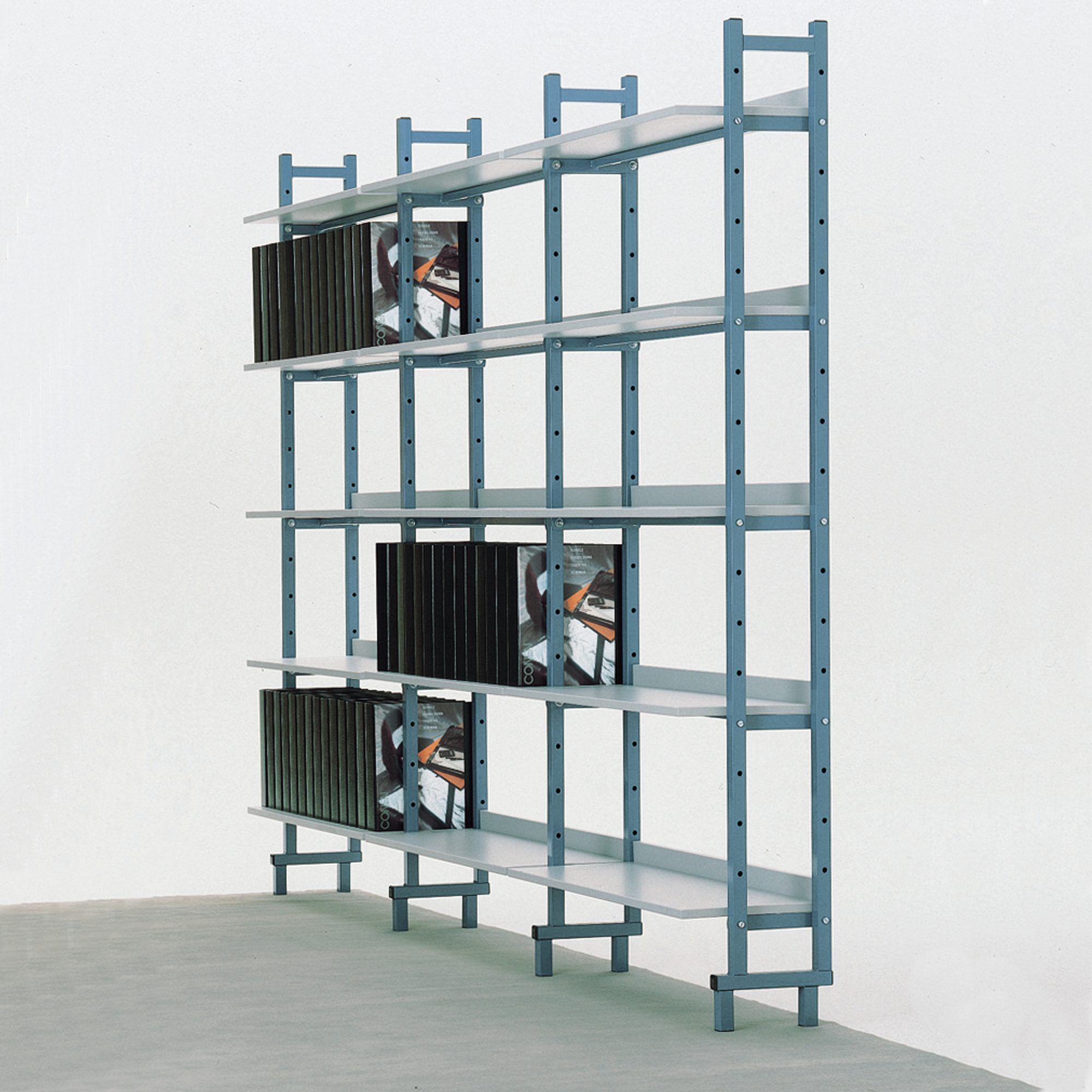 Vloer met stalen steun voor boekenplank