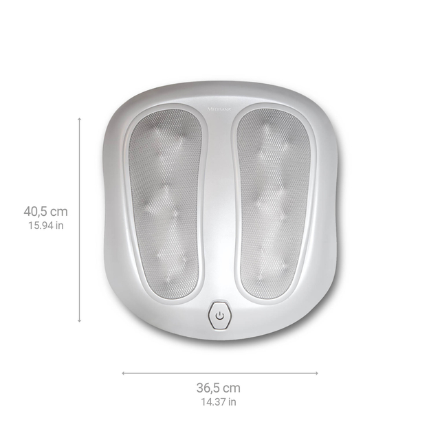 * Het Medisana FM 883 Shiatsu voetmassageapparaat laat je gestreste voeten weer ademen. Dankzij de rustgevende Shiatsu-massage kunnen je voetzolen en hielen ontspannen en nieuwe energie opdoen. De massages kunnen worden genoten in twee verschillende massage-intensiteiten - afhankelijk van hoe je je voelt gedurende de dag. * Bijzonder praktisch: het Medisana FM 883 Shiatsu voetmassageapparaat masseert niet alleen de voeten en zorgt voor de best mogelijke ontspanning thuis - het apparaat kan ook worden gebruikt om de rug te masseren na een inspannende dag. 6 x 3 roterende massagekoppen zorgen voor een goede doorbloeding, warmte en welzijn. * Een ontspannende massagebehandeling kan bijzonder goed worden genoten in combinatie met warmte. Daarom heeft het Medisana FM 883 Shiatsu voetmassageapparaat ook een inschakelbare roodlicht- en warmtefunctie in alle massagekoppen, die ook gebruikt kan worden om spanning te verlichten. Twee in hoogte verstelbare voeten maken het eenvoudig om de massagepositie in te stellen.
