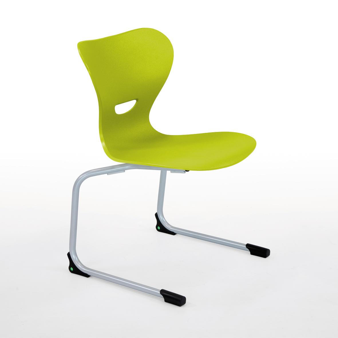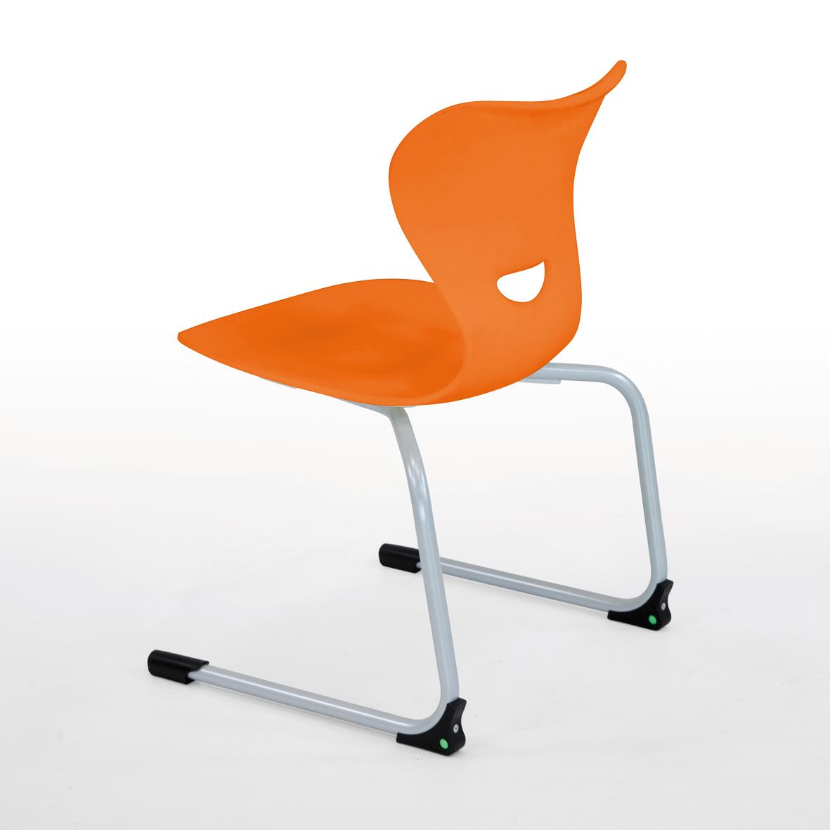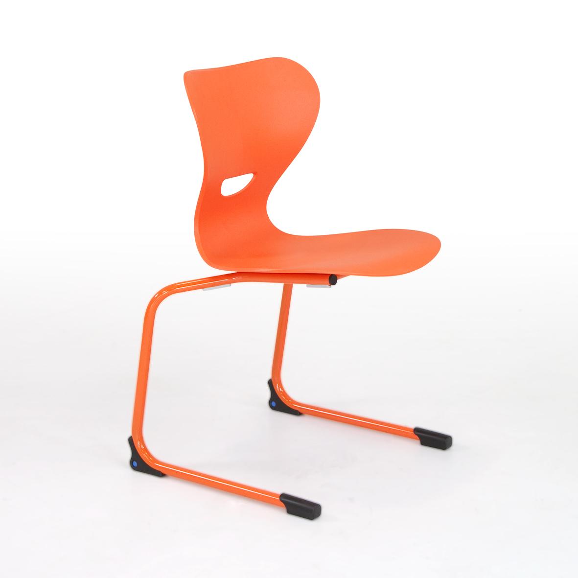 Schoolstoel met naar voren open sledeframe, verend. Met ergonomisch gevormde, flexibele en gemakkelijk schoon te maken (hygiëne!) kunststof zitschaal met greepgat, verkrijgbaar in vele moderne kleuren. Zithoogtes volgens DIN 2 tot 7, verschillende framekleuren volgens RAL, zitkussens en de verschillende uitrustingen van de vloerbeschermers zijn als extra opties verkrijgbaar