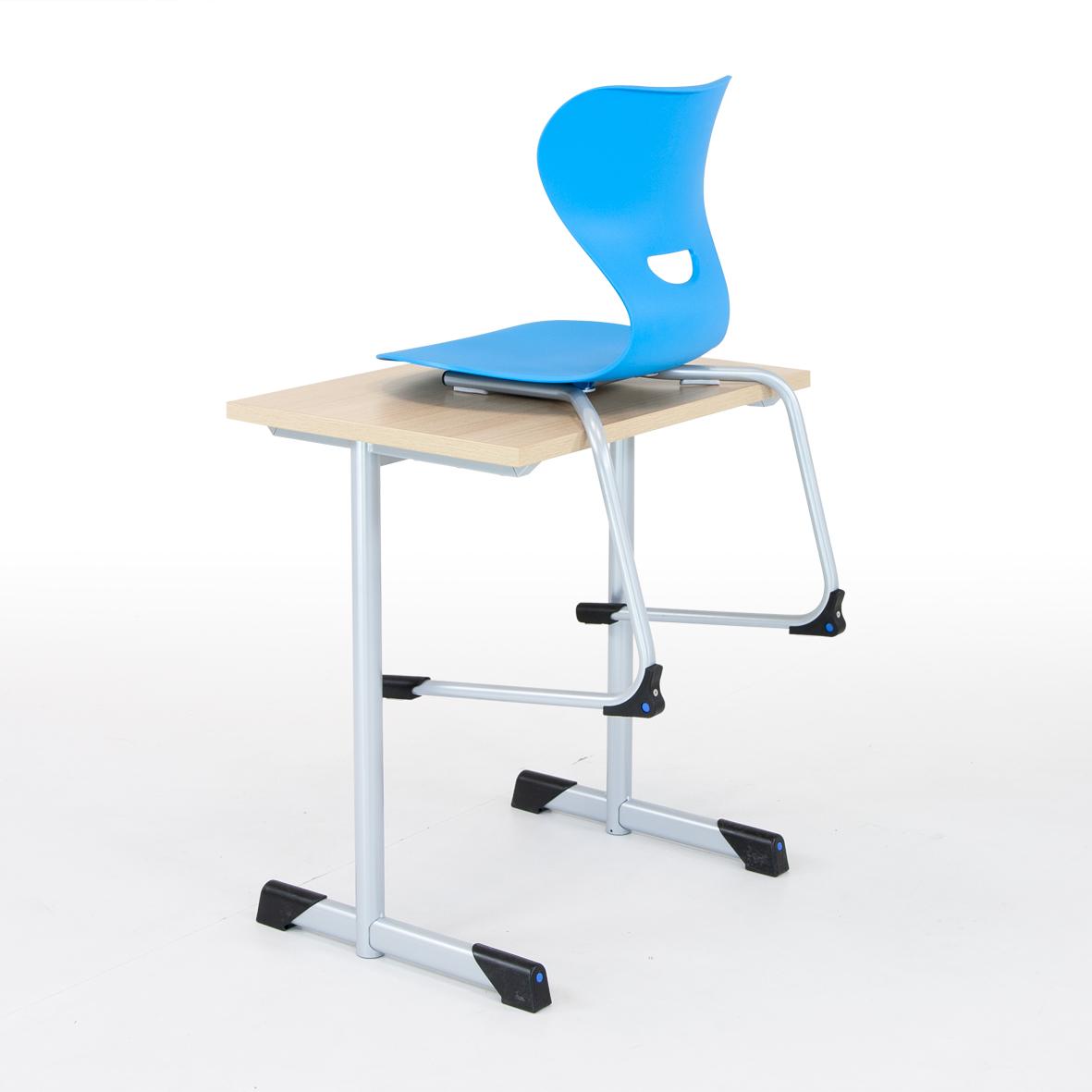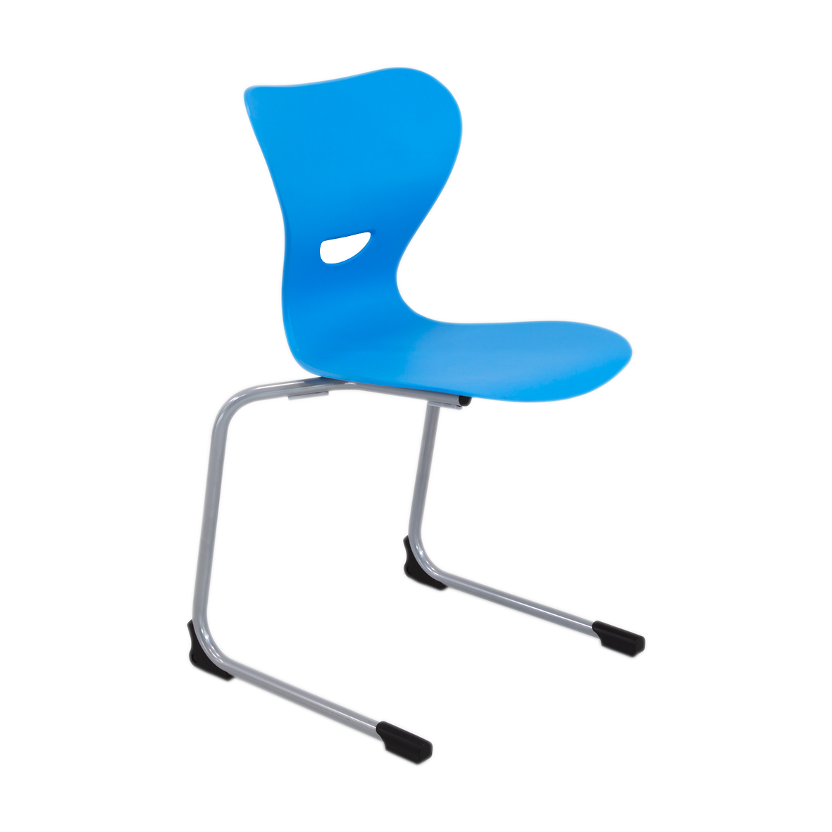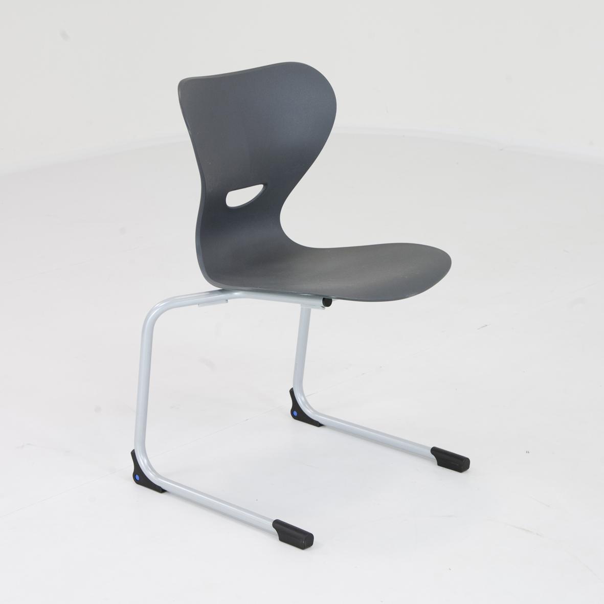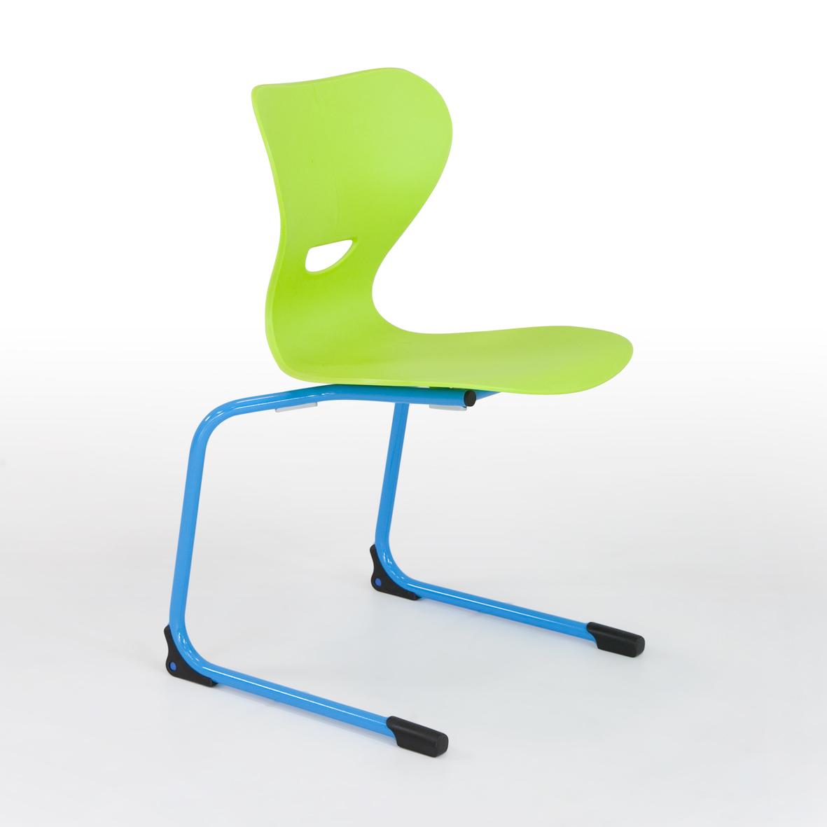 Schoolstoel met naar voren open sledeframe, verend. Met ergonomisch gevormde, flexibele en gemakkelijk schoon te maken (hygiëne!) kunststof zitschaal met greepgat, verkrijgbaar in vele moderne kleuren. Zithoogtes volgens DIN 2 tot 7, verschillende framekleuren volgens RAL, zitkussens en de verschillende uitrustingen van de vloerbeschermers zijn als extra opties verkrijgbaar