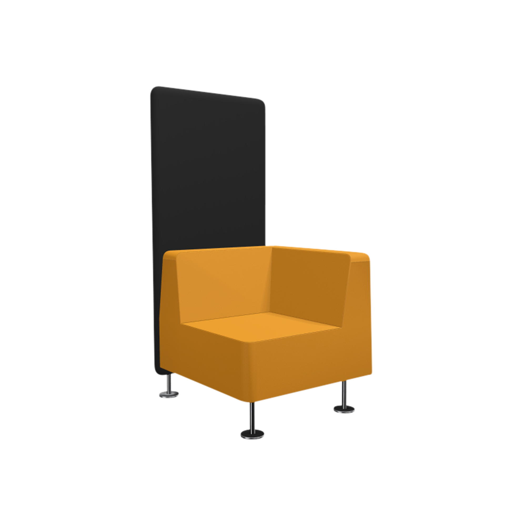 Onze hoekfauteuil is een onderdeel van de Wall In serie en maakt het mogelijk om kleine en grote zitgroepen te hebben voor vergaderingen en gesprekken, maar ook met gedeelde zitplaatsen voor individueel werk. Onze hoekfauteuil biedt je niet alleen een verbinder voor de installatie van een akoestische scheidingswand, maar ook een optimale aanpassing aan alle ruimtes dankzij de verscheidenheid aan kleurvarianten. De hoge variëteit laat veel mogelijkheden in interieurontwerp. De hoekfauteuil heeft drie framevarianten: MetallicPro, chroom en zwart (RAL 9005). De voeten zijn voorzien van esthetische platen en zijn verkrijgbaar in drie kleuren. Daarnaast worden standaard in hoogte verstelbare metalen glijders meegeleverd. Ook aan zitcomfort ontbreekt het de hoekfauteuil niet dankzij de gestoffeerde zitschaal.