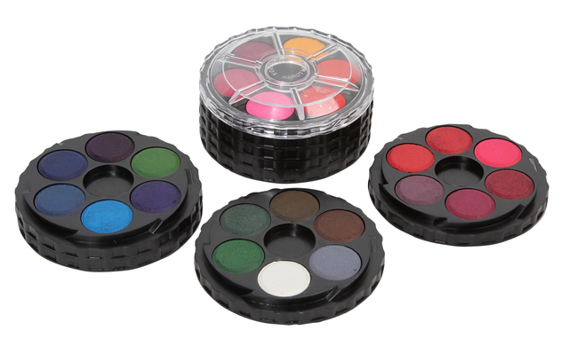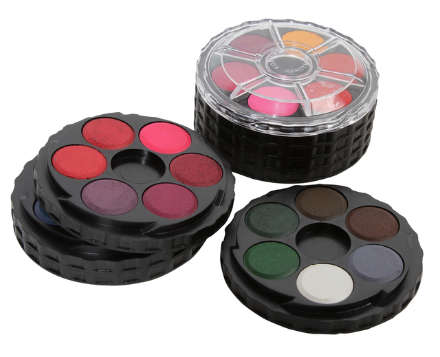 * De verfnapjes, elk 22,5mm, zitten opgeborgen in een tablet. * 6 kleuren per tablet. * Alles in carrouselvorm schakelbaar. * 48 kleuren.