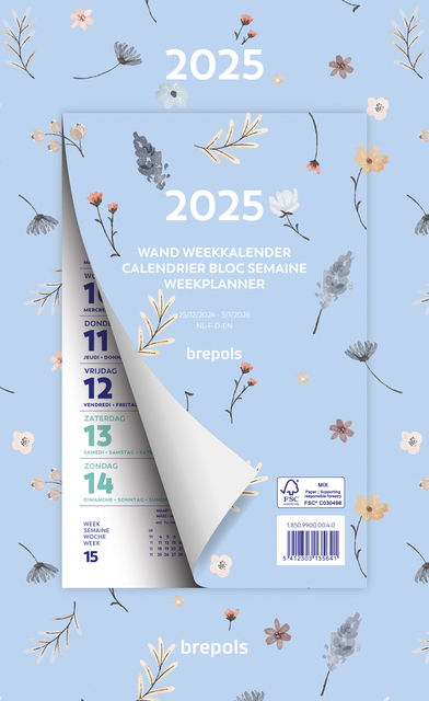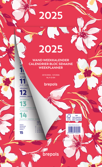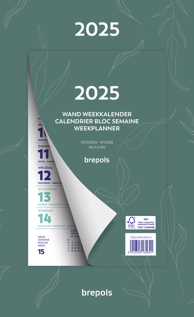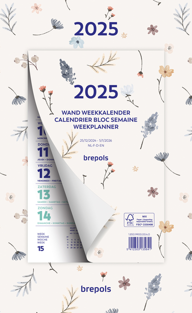 Eigenschappen "Weekkalender 2026 Brepols 190x130 7dagen/1pagina Fantasie assorti"