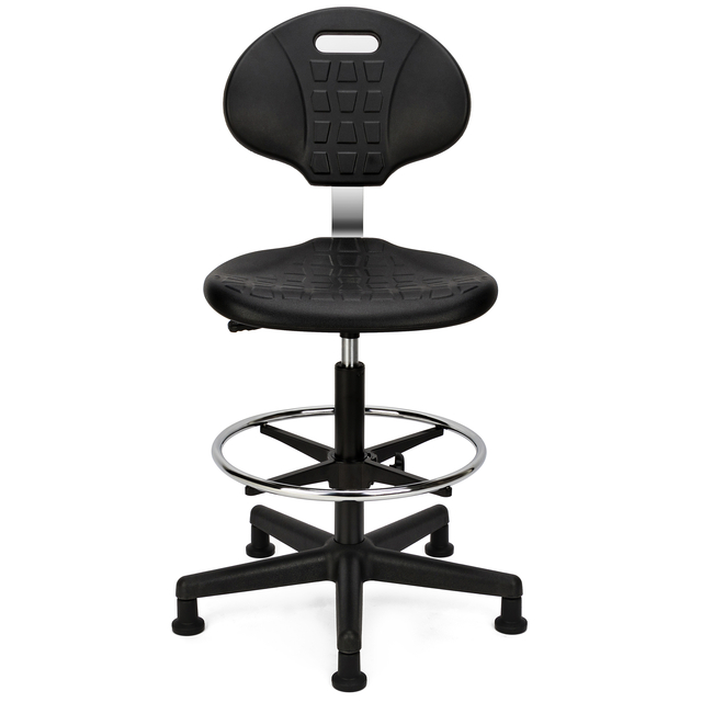 * Tarente werkstoel large. * Zitting en rug uitgevoerd in PU. * In hoogte verstelbare gasveer. * Zwart kunststof voetenkruis. * Voorzien van glijders en voetring. * 2 jaar garantie. * Breedte zitting: 46,0cm. * Diepte zitting: 43,5cm. * Hoogte zitting: 55,0 - 81,0cm.