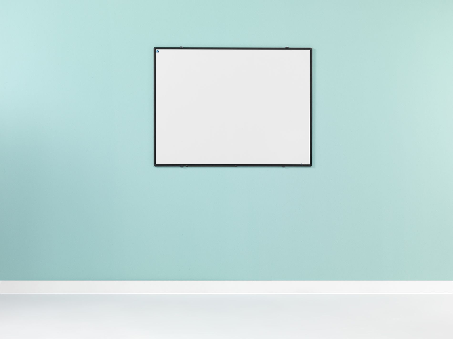 Magneethoudend whitebord van wit gelakt staal in de afmeting 120x240 cm. Gelakt staal is een prijsgunstig alternatief voor geemailleerd staal. Dit whitebord is geschikt voor normaal tot redelijk intensief gebruik. Het zwart aluminium Softline profiel heeft zwarte kunststof hoeken, zwarte bevestigingshaken en een zwarte afleggoot van 30 cm. Het bord kan met de meegeleverde montageset zowel horizontaal als verticaal gehangen worden.