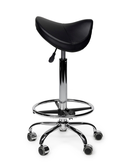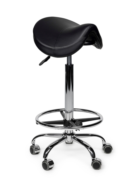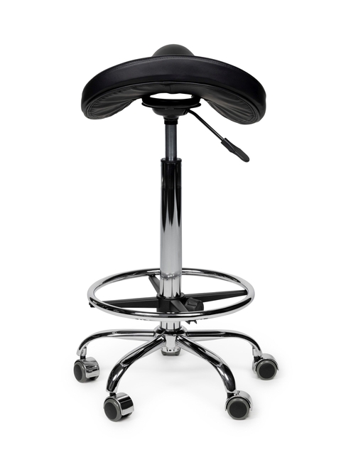 Zadelkruk Office Premium hoog met voetring harde wielen zw